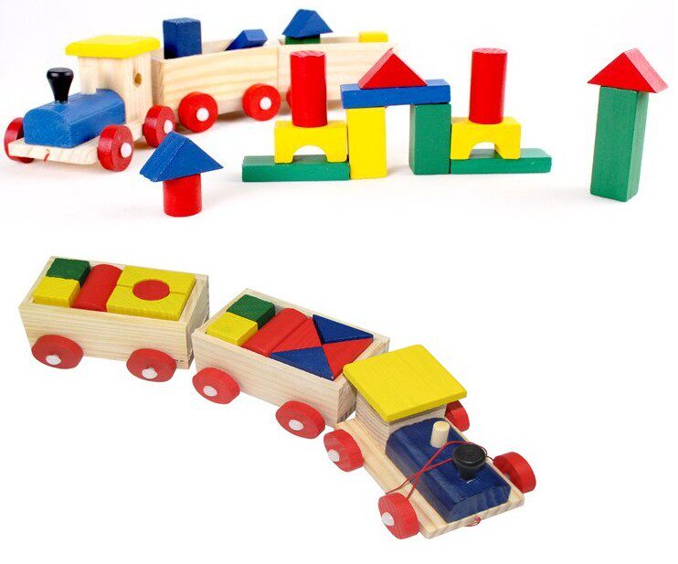 Деревянная игрушка, конструктор, поезд, прицеп, познавательная игрушечная машина, раннее развитие, обучение