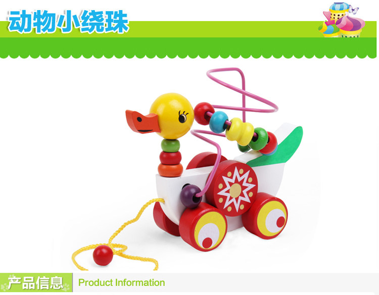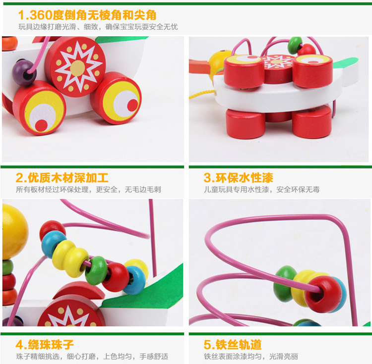 Мультяшный прицеп, деревянные детские бусы, интеллектуальная игрушка, раннее развитие