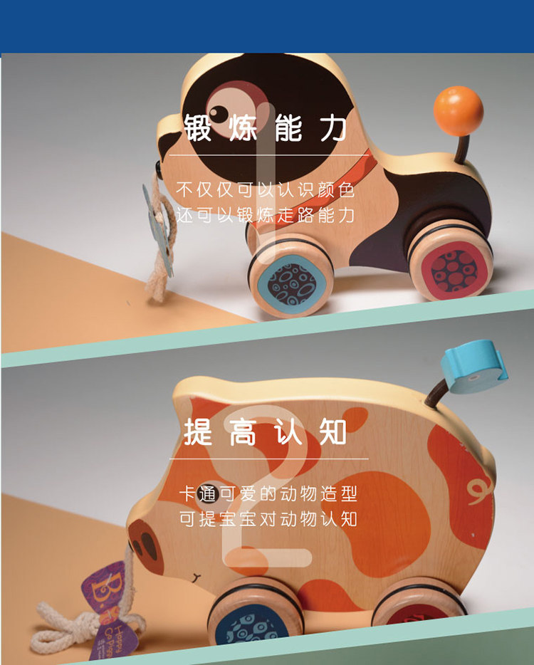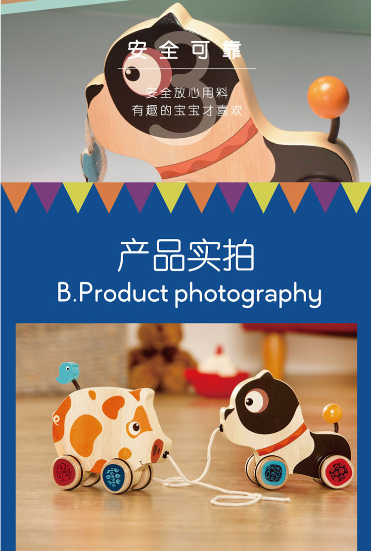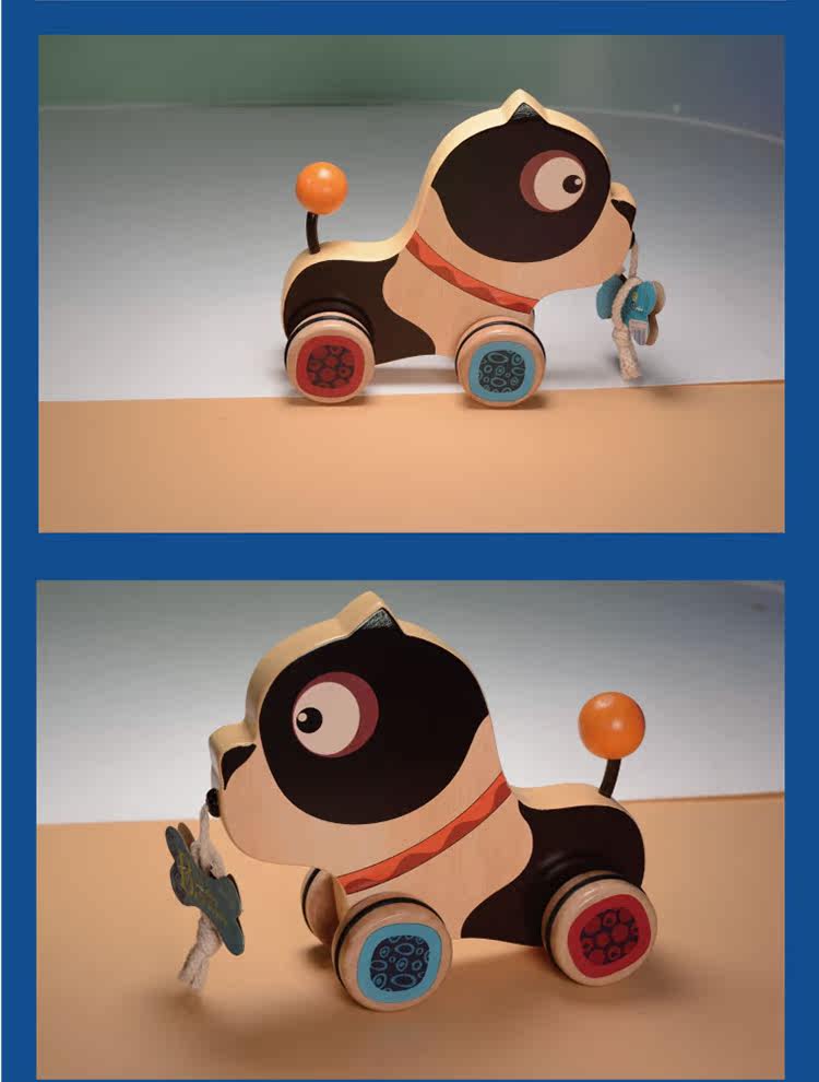 B.toys Belle Wooden Line Toy Puppy Pig Trang Trang, чтобы выучить шаг и головоломка