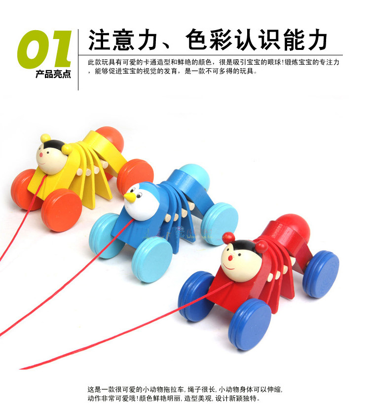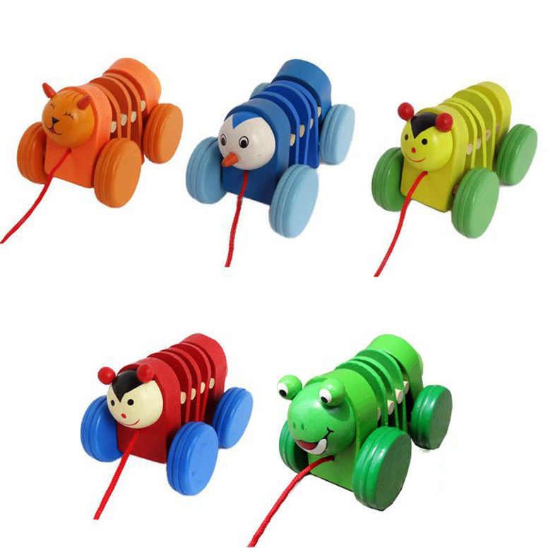 Мультяшные детские ходунки с животными для младенца, деревянная игрушка со шнуром, гусеница