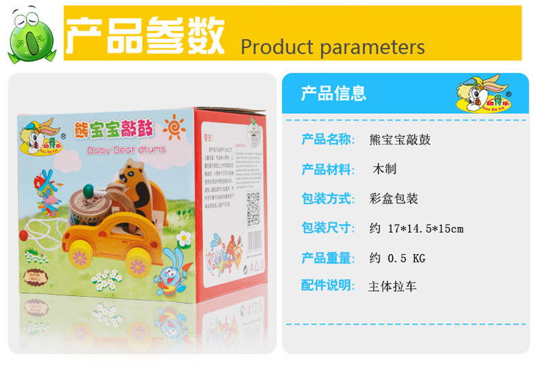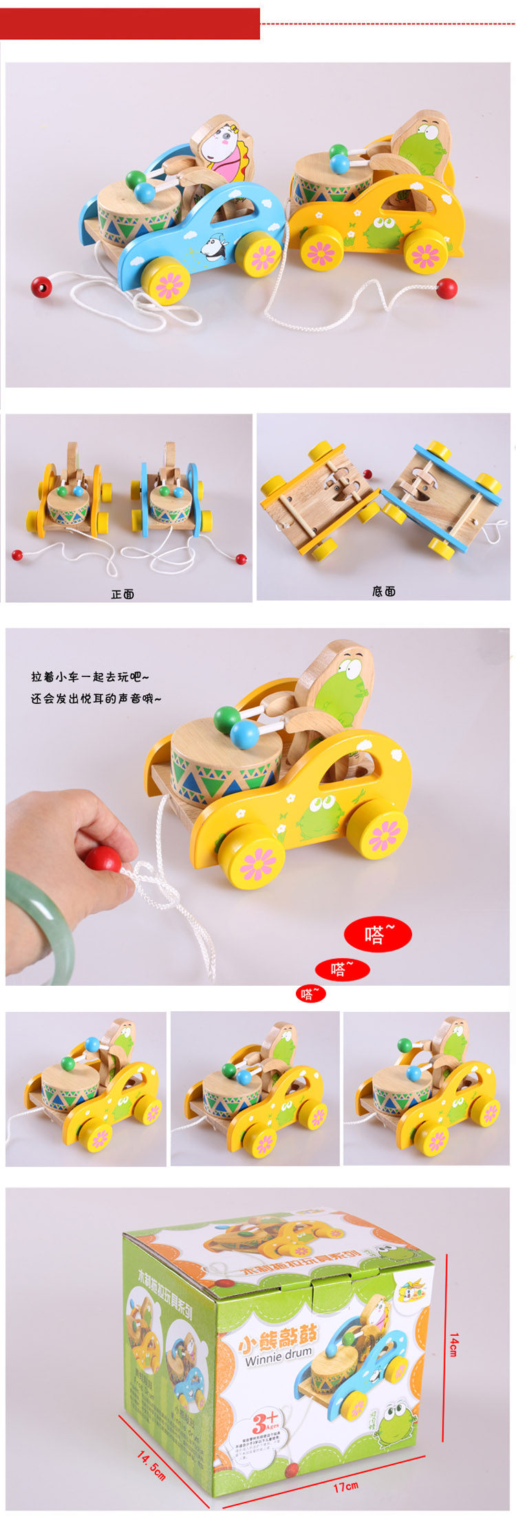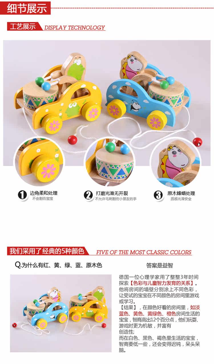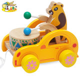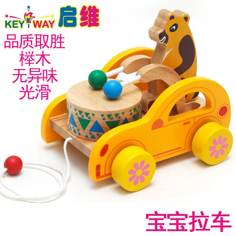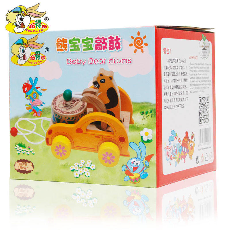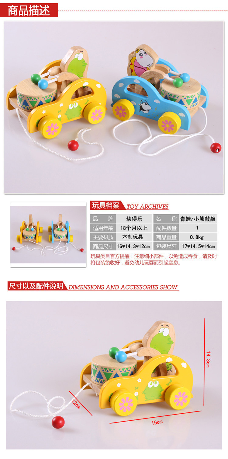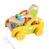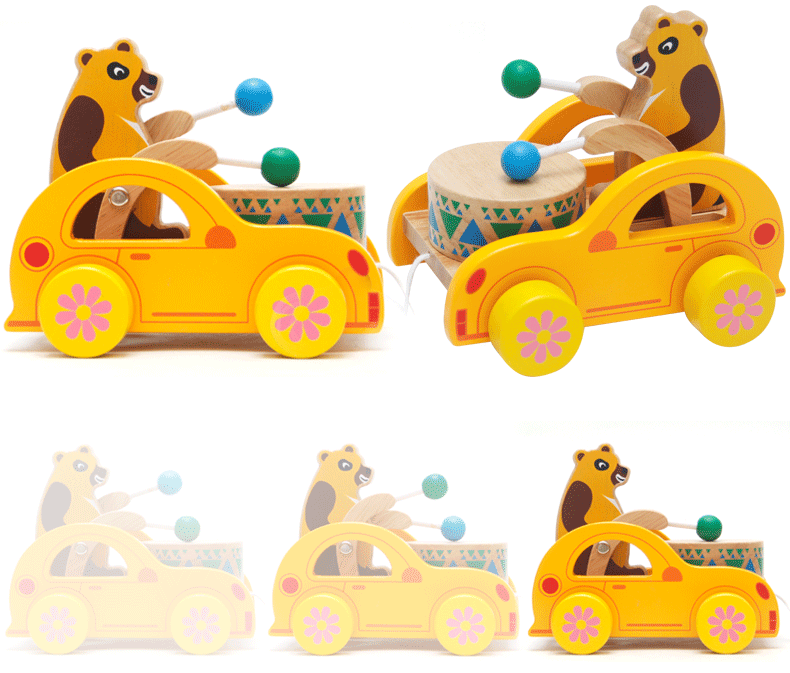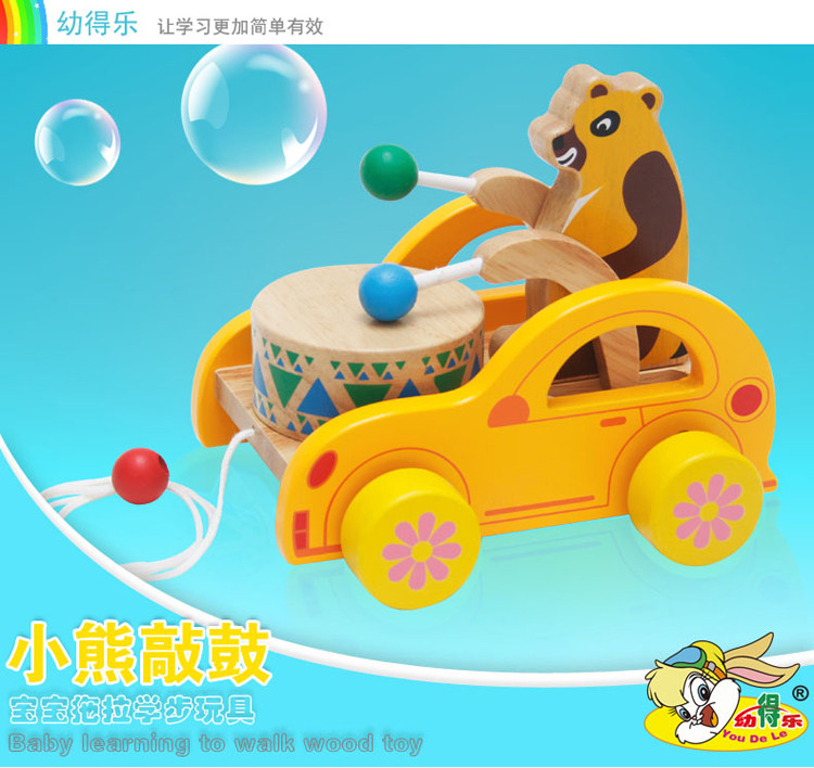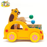幼得乐 Деревянная игрушечная машина для раннего возраста на шнурке, с медвежатами, 0-1-2-3 лет