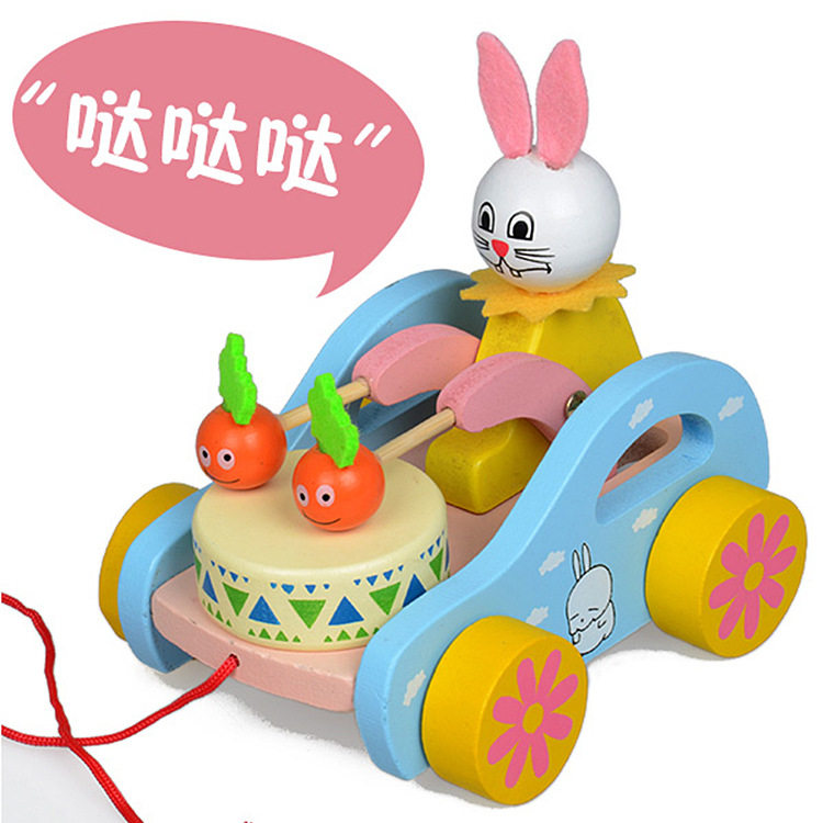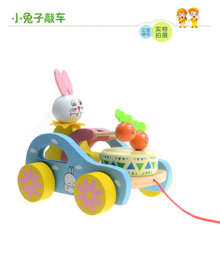 Деревянный кролик, деревянные барабаны, игрушка для младенца для раннего возраста, белый кролик, раннее развитие