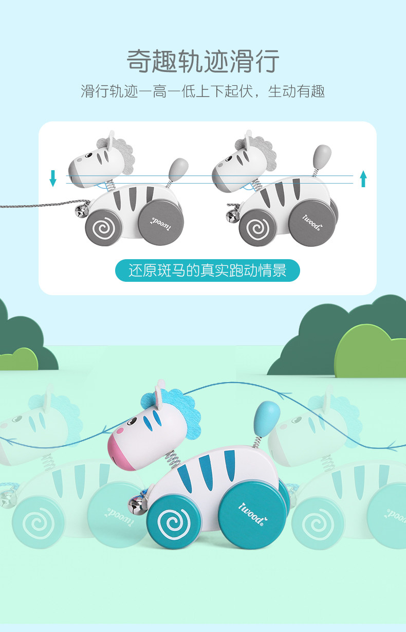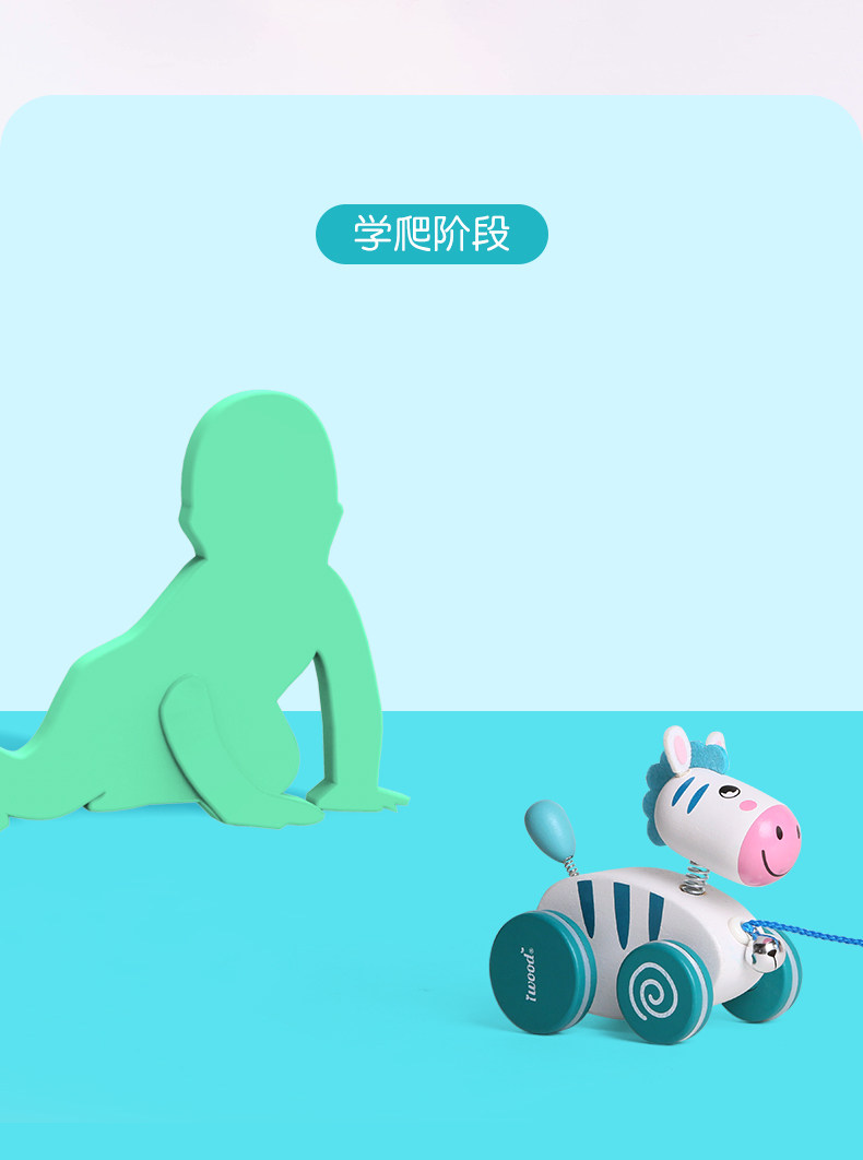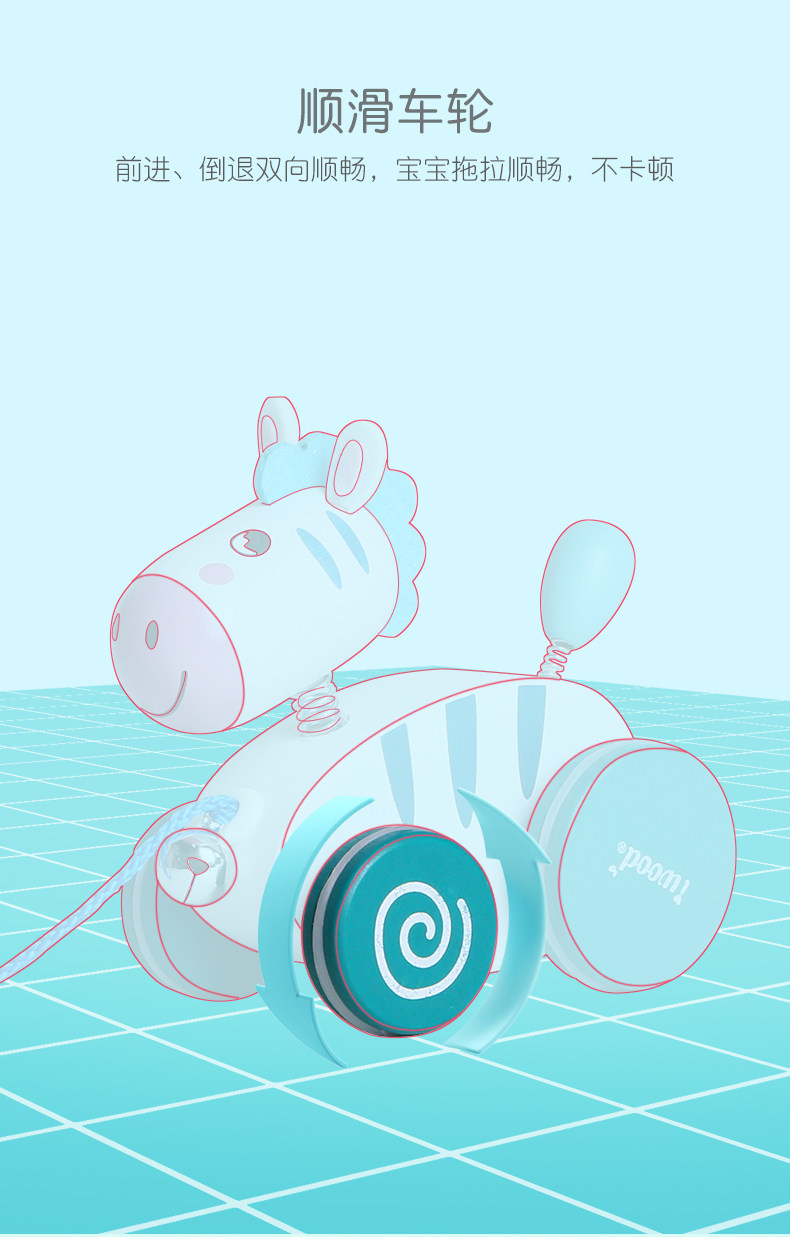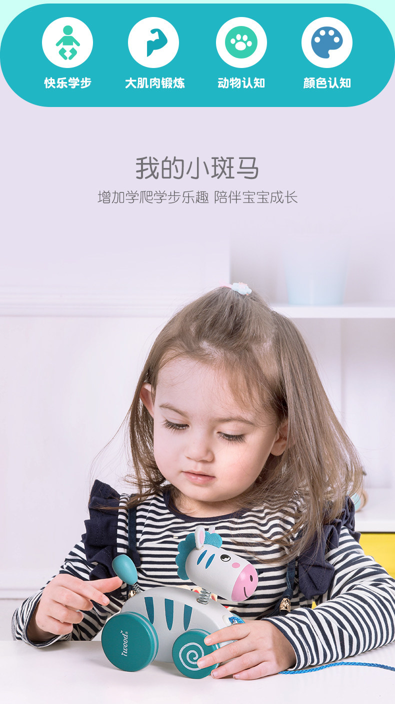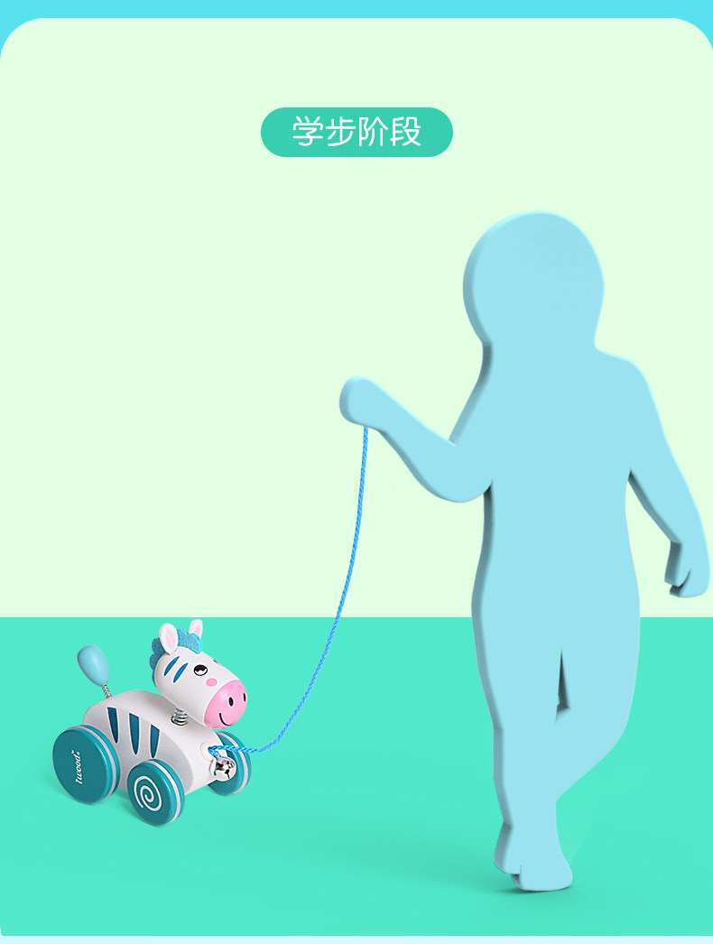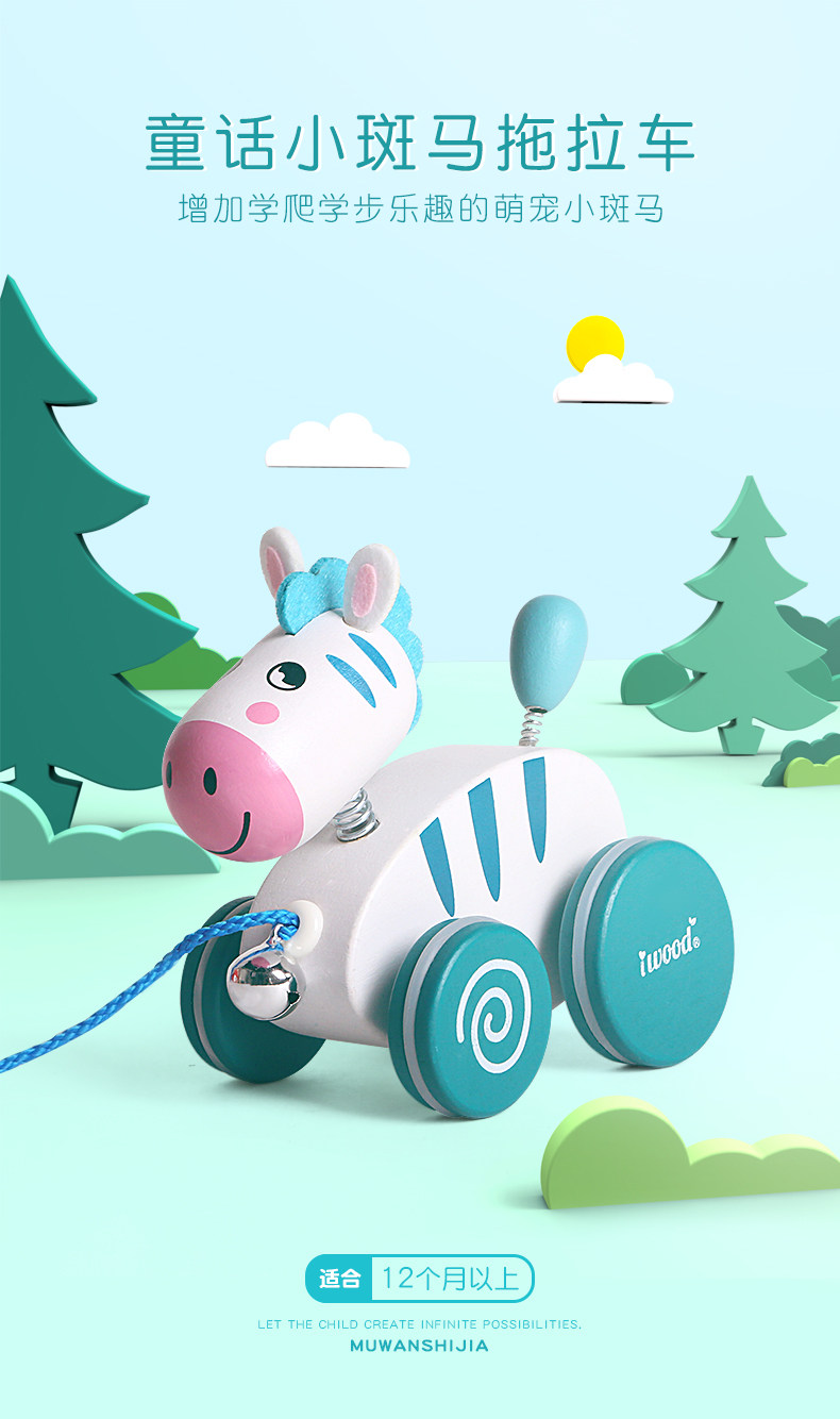 木玩世家 Детская зебра, детские ходунки, интеллектуальная игрушка на шнурке со шнуром, 1-3 лет, раннее развитие