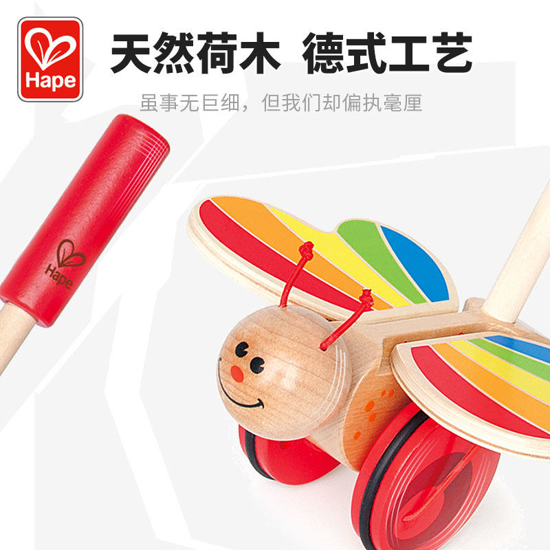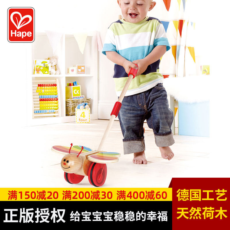 Hape Деревянная детская игра на толкание пальцев с бабочкой, коляска для раннего возраста, игрушка, учит ходить
