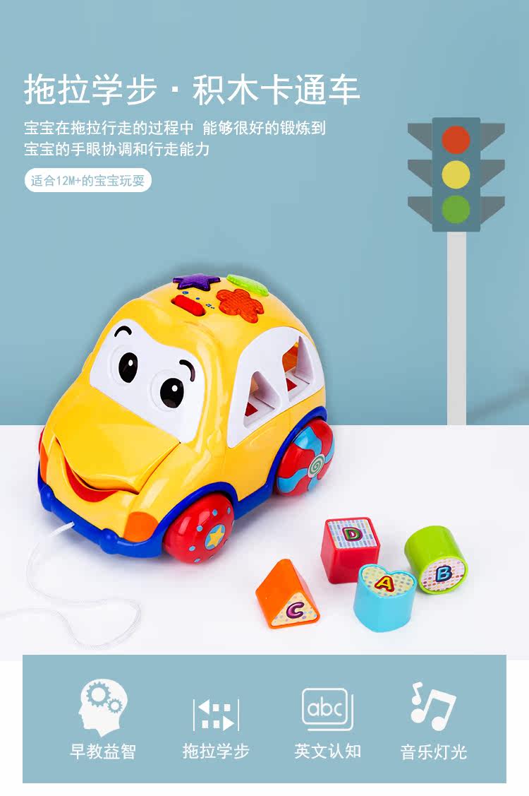 Игрушка со шнуром для раннего возраста для младенца, геометрический познавательный музыкальный конструктор, транспорт, раннее развитие