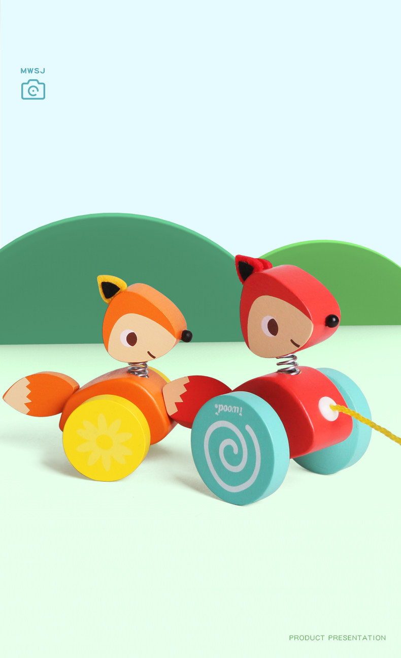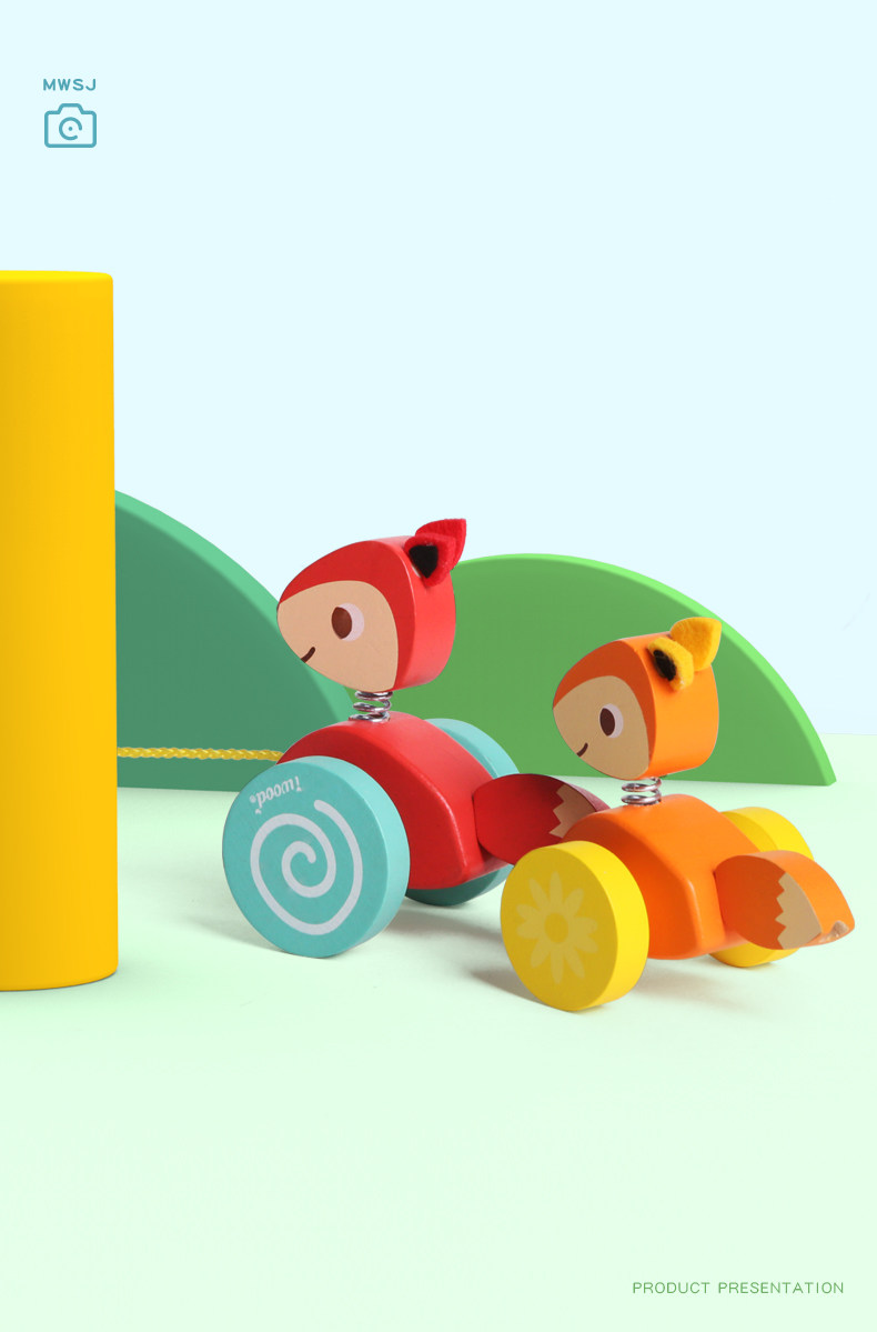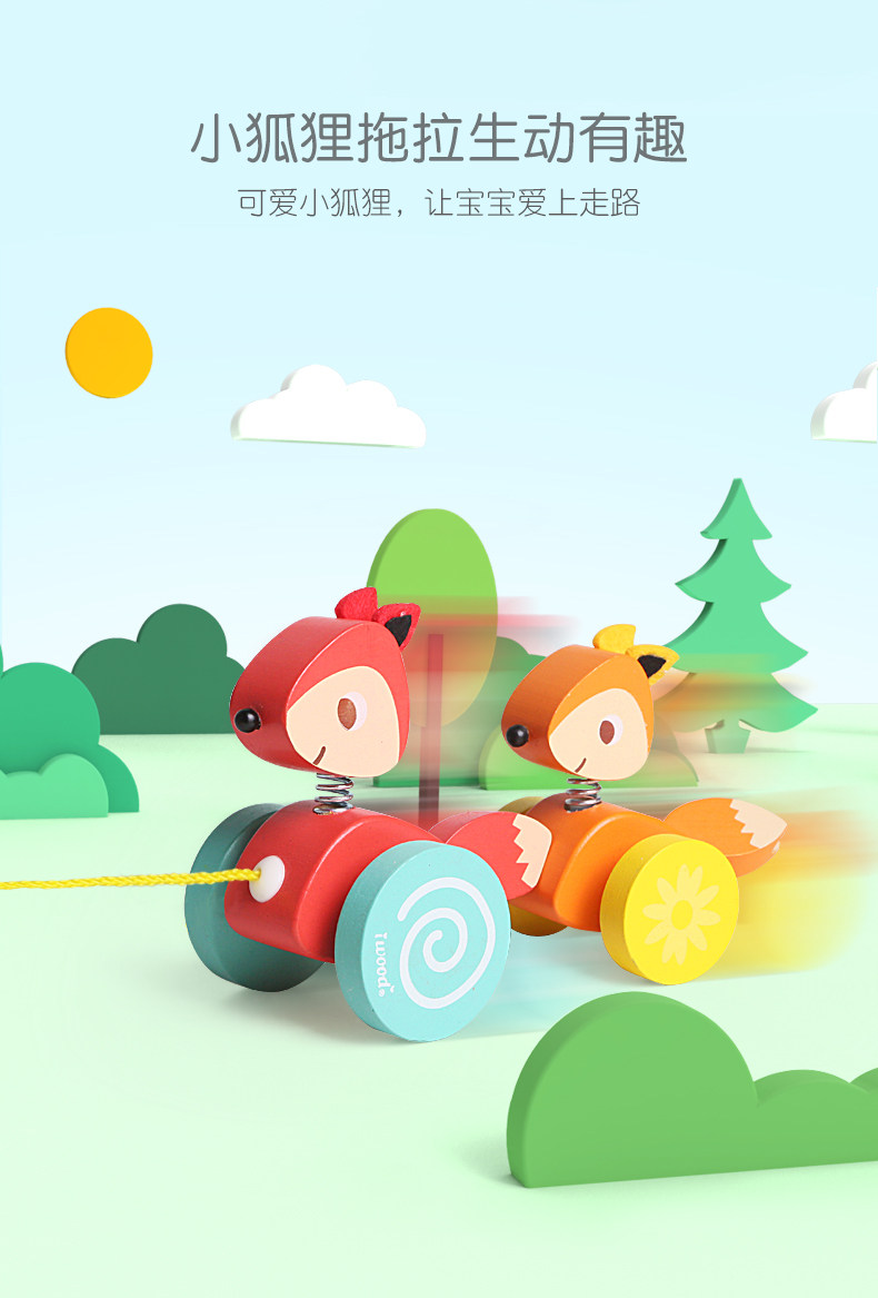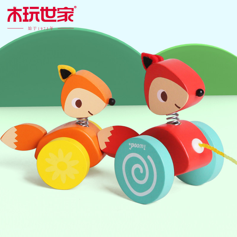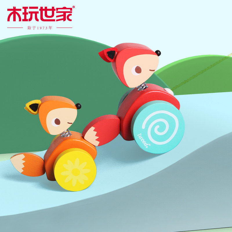 木玩世家 Игрушечная машина для раннего возраста на шнурке со шнуром для детского сада, лиса, енот