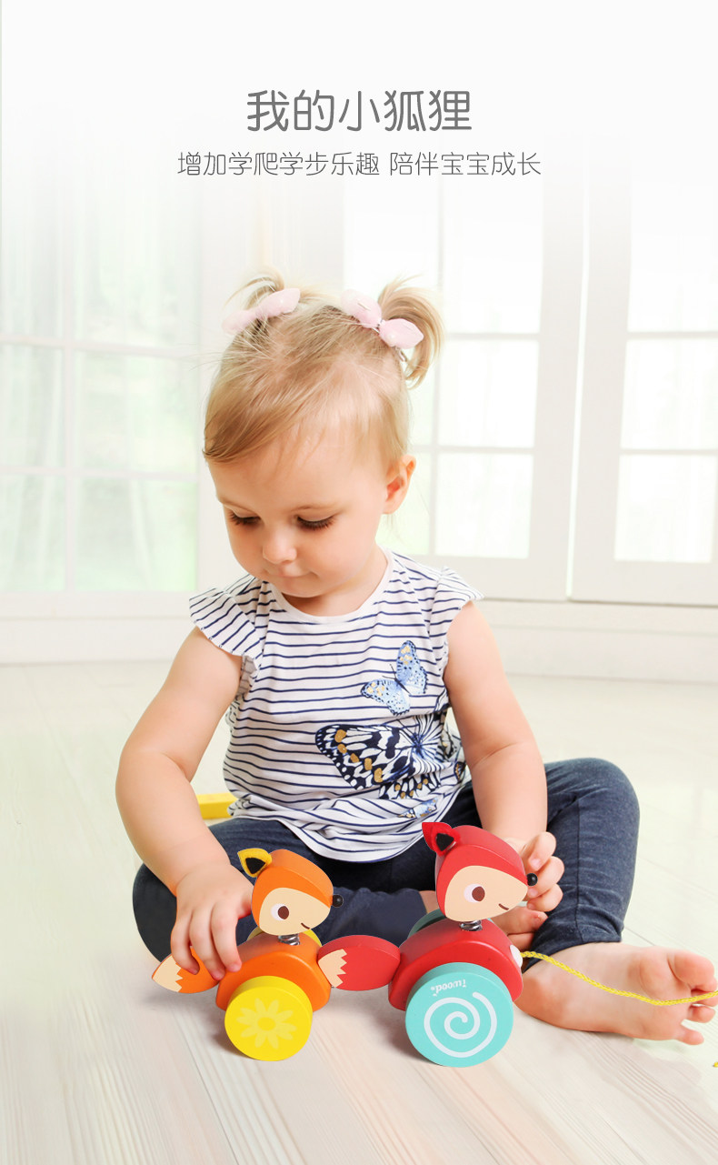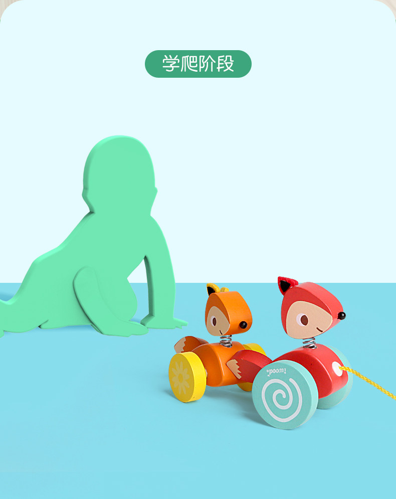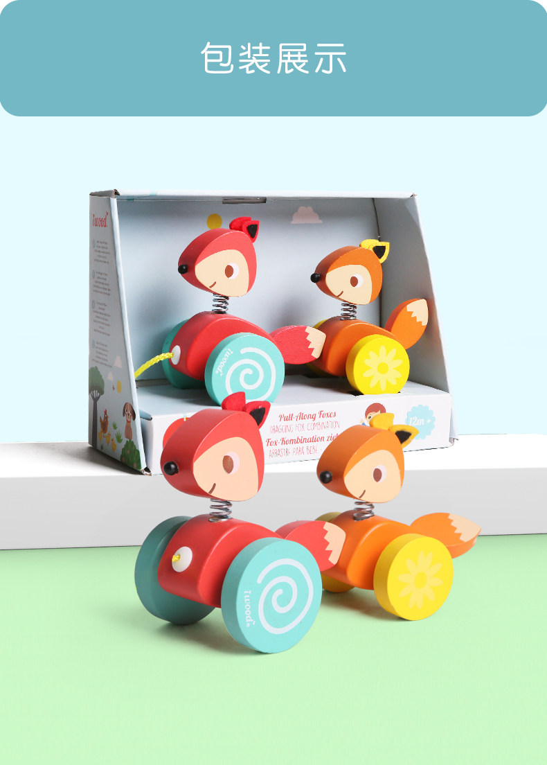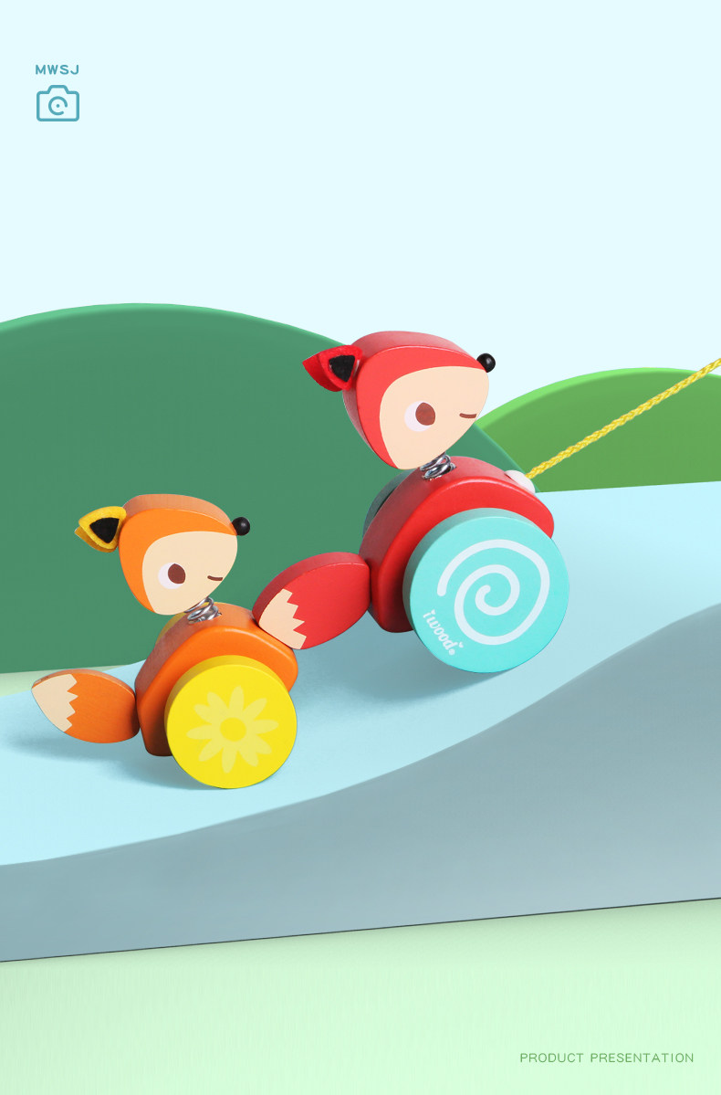 木玩世家 Игрушечная машина для раннего возраста на шнурке со шнуром для детского сада, лиса, енот
