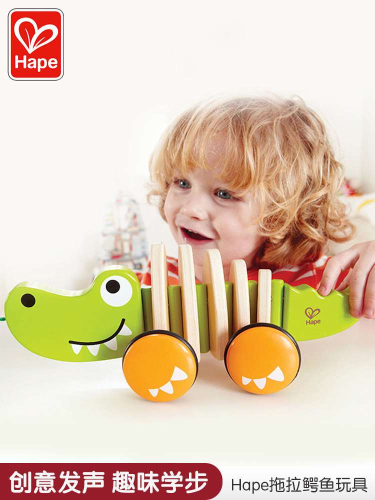 Hape Игрушка со шнуром для раннего возраста на шнурке, крокодил