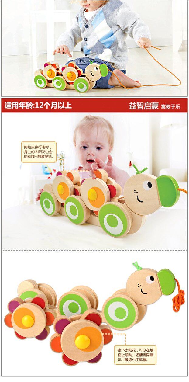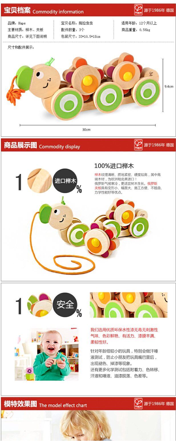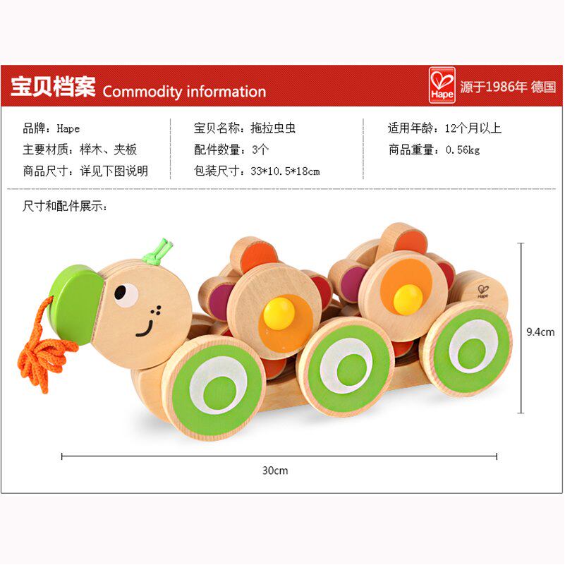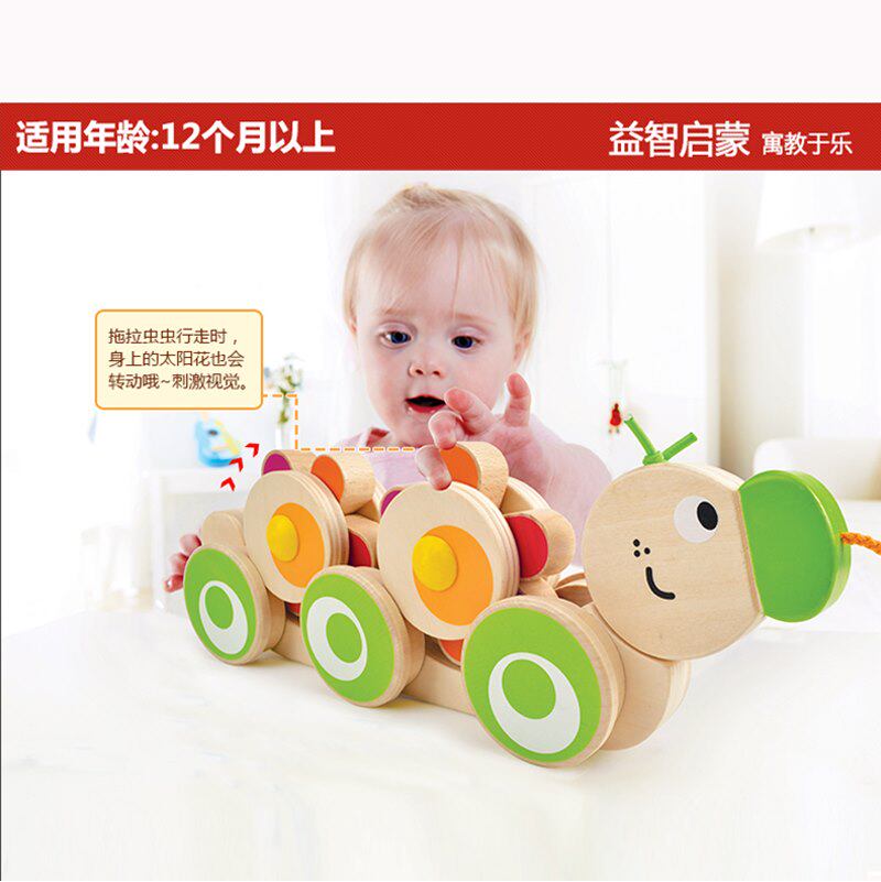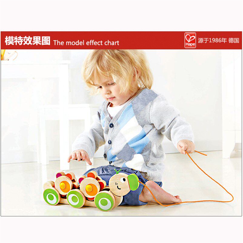 Hape Милая деревянная игрушка для раннего возраста на шнурке, игра на толкание пальцев, 2 лет