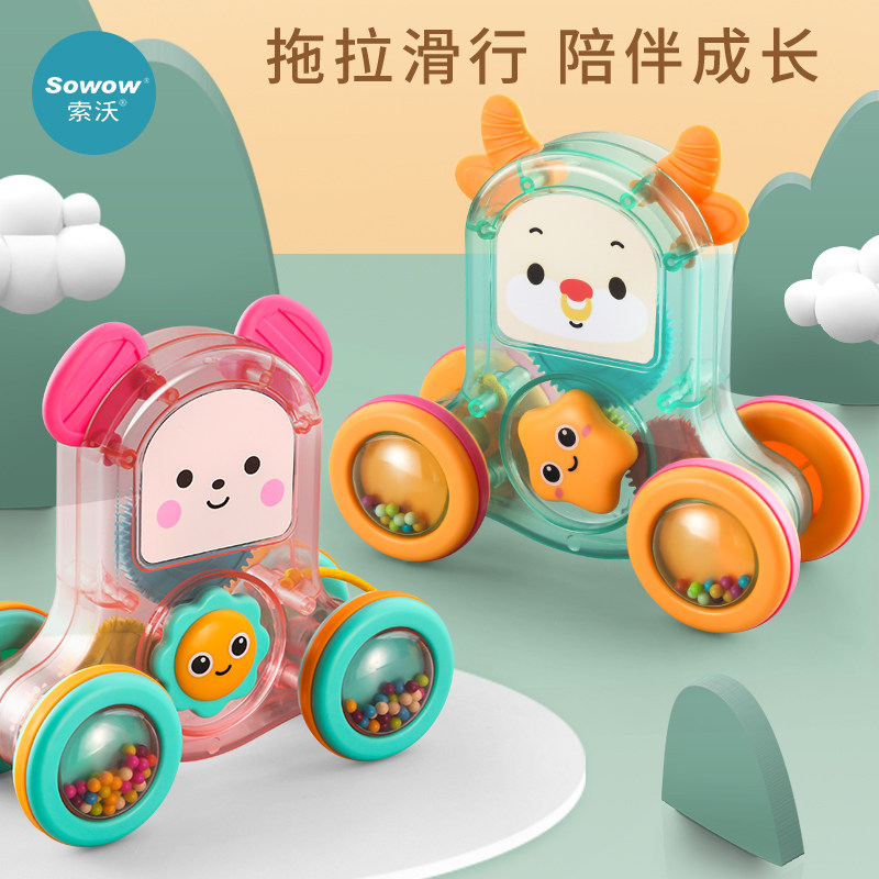 Детский внедорожник для ползания, прорезыватель, детская погремушка со шнуром, игрушка для раннего возраста, 1-3 лет