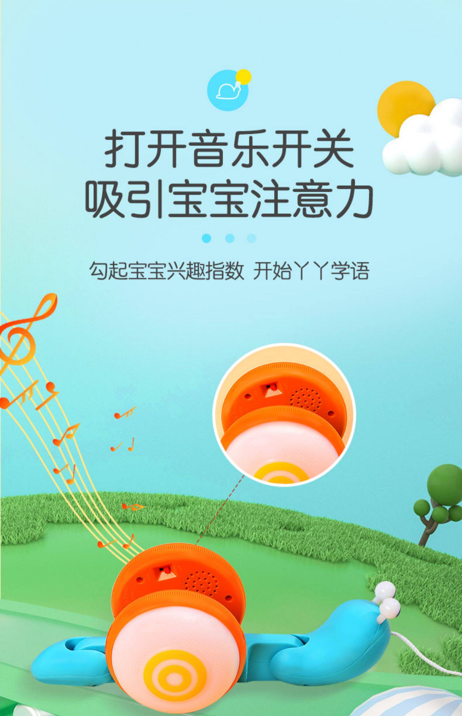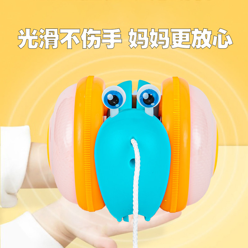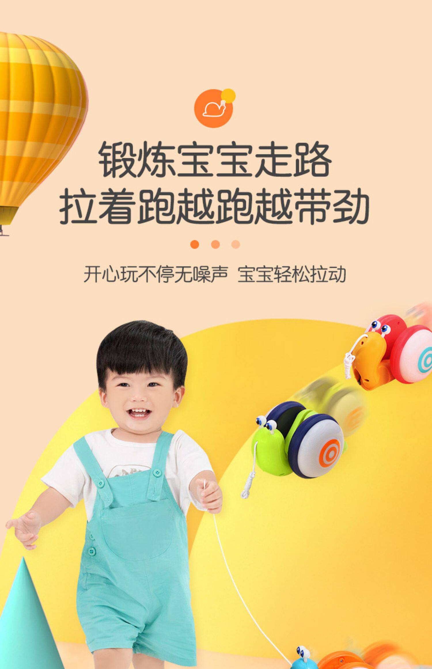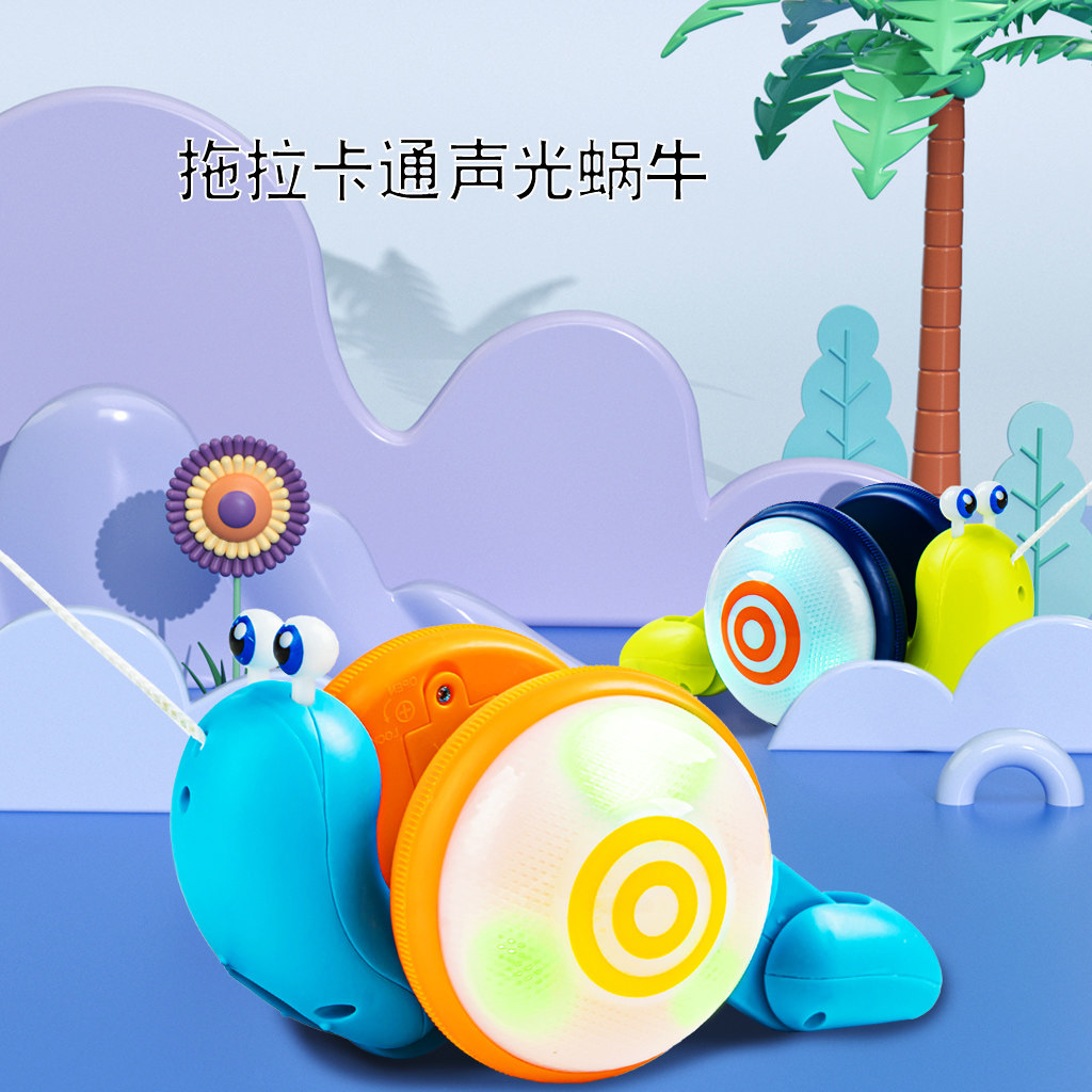 Слот -улитка перетаскивает игрушку, держащую линию линии веревочной линии динамического шага с 1 -летним ребенком.