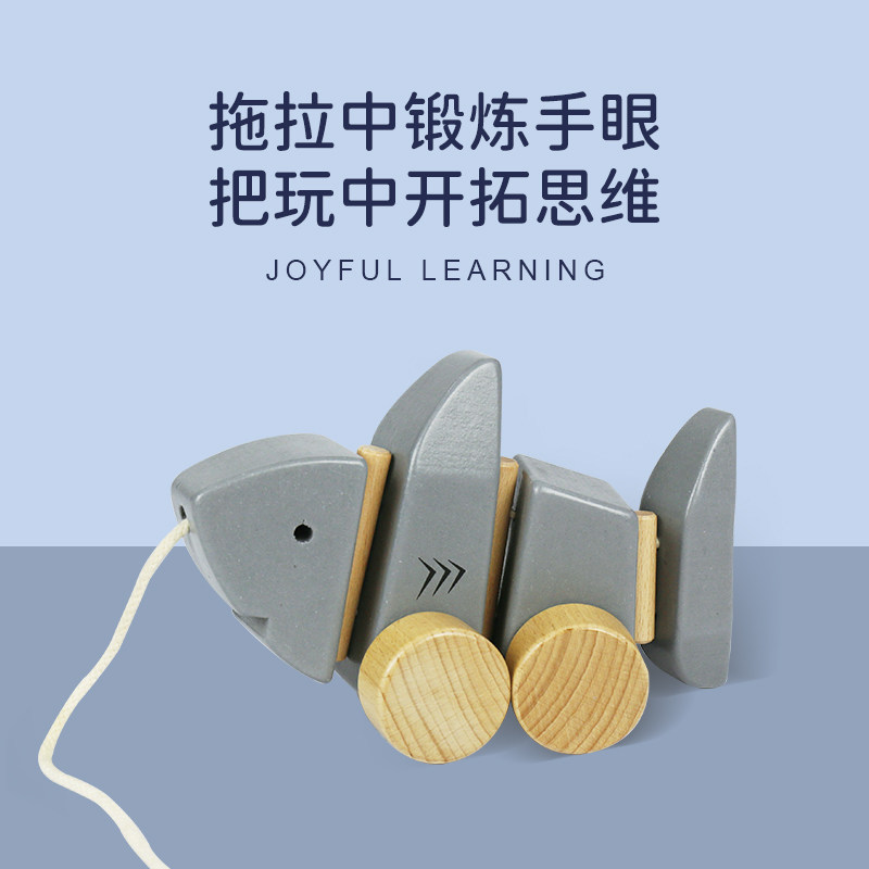 Детская акула, деревянная игрушка, детский конструктор, ходунки на шнурке, игрушечная машина для мальчиков и девочек, 1 лет