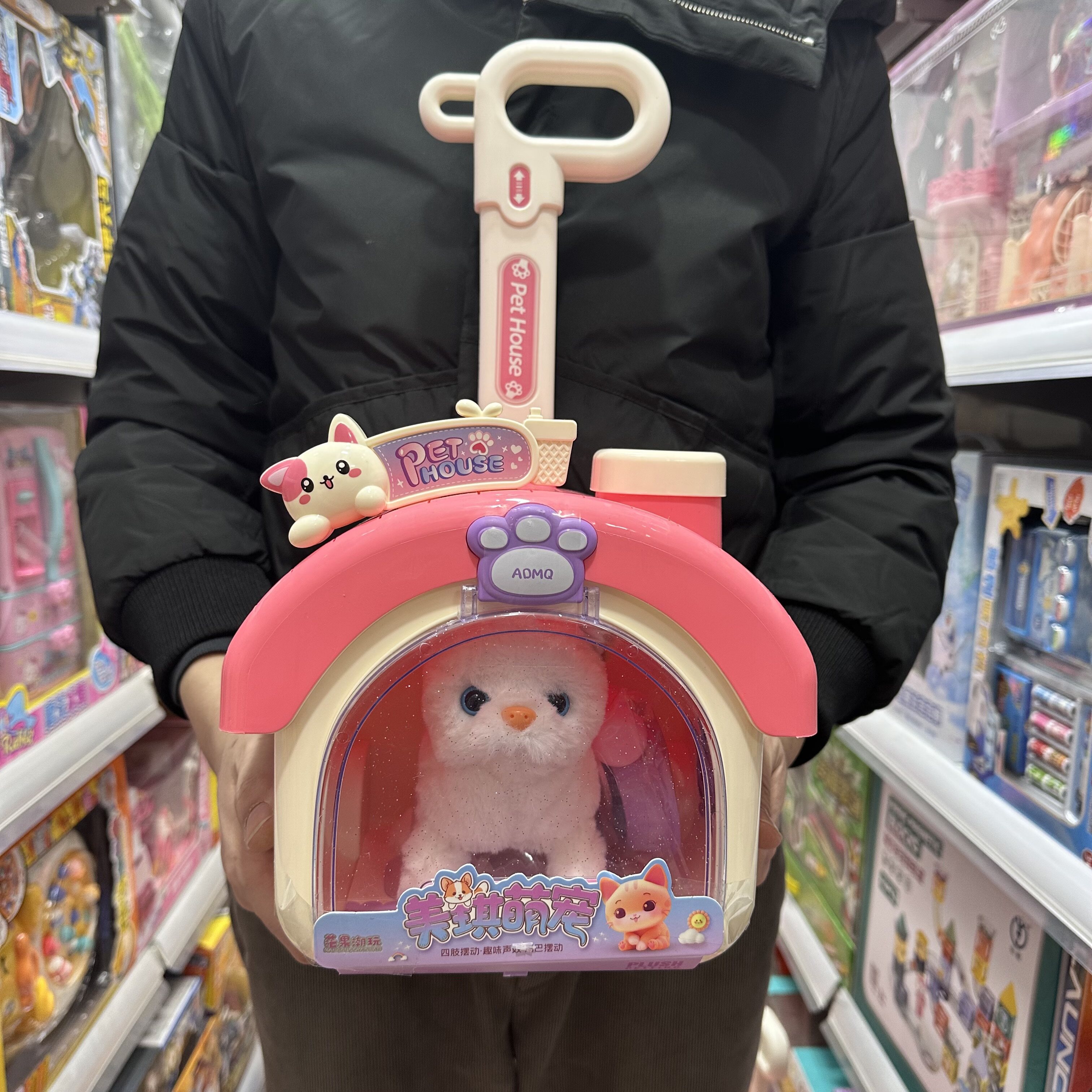 Электрический плюшевый кролик, тележка, чемодан, коробка, домик, игрушка, кот