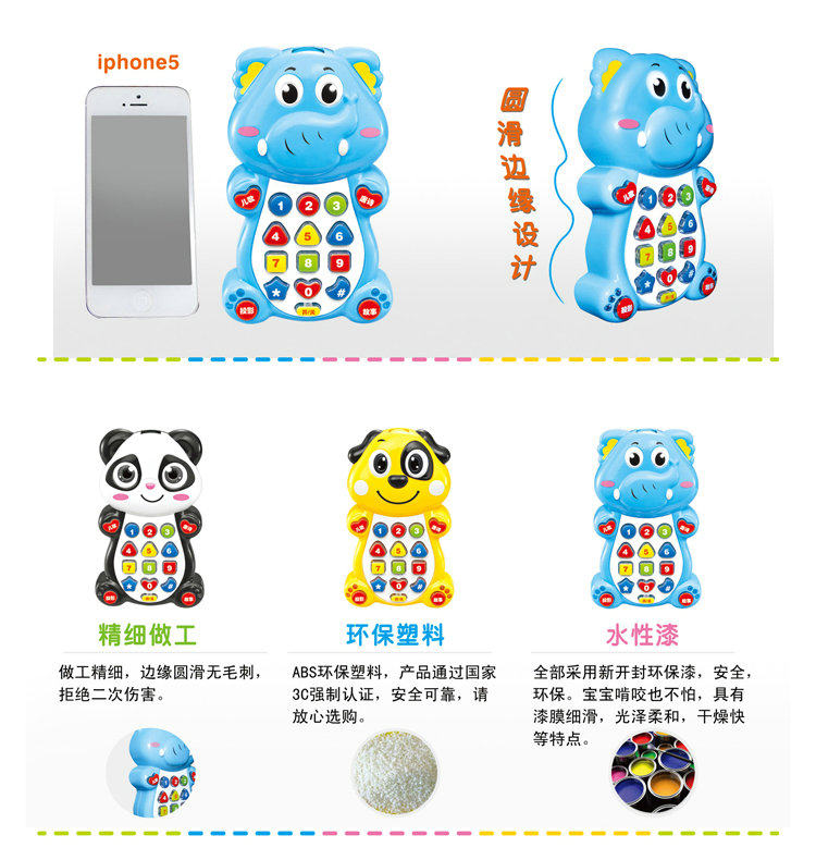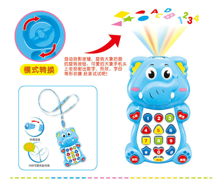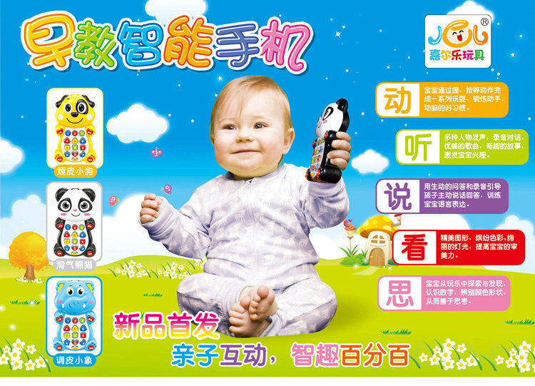 Музыкальный мультяшный мобильный телефон, интеллектуальная игрушка, 0609A, раннее развитие