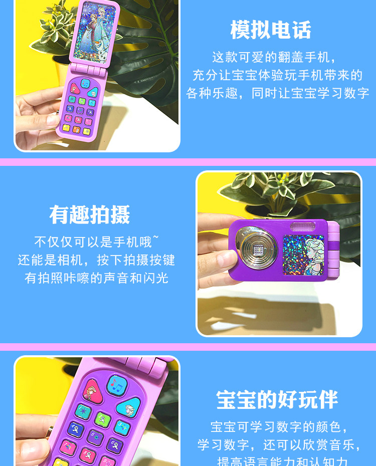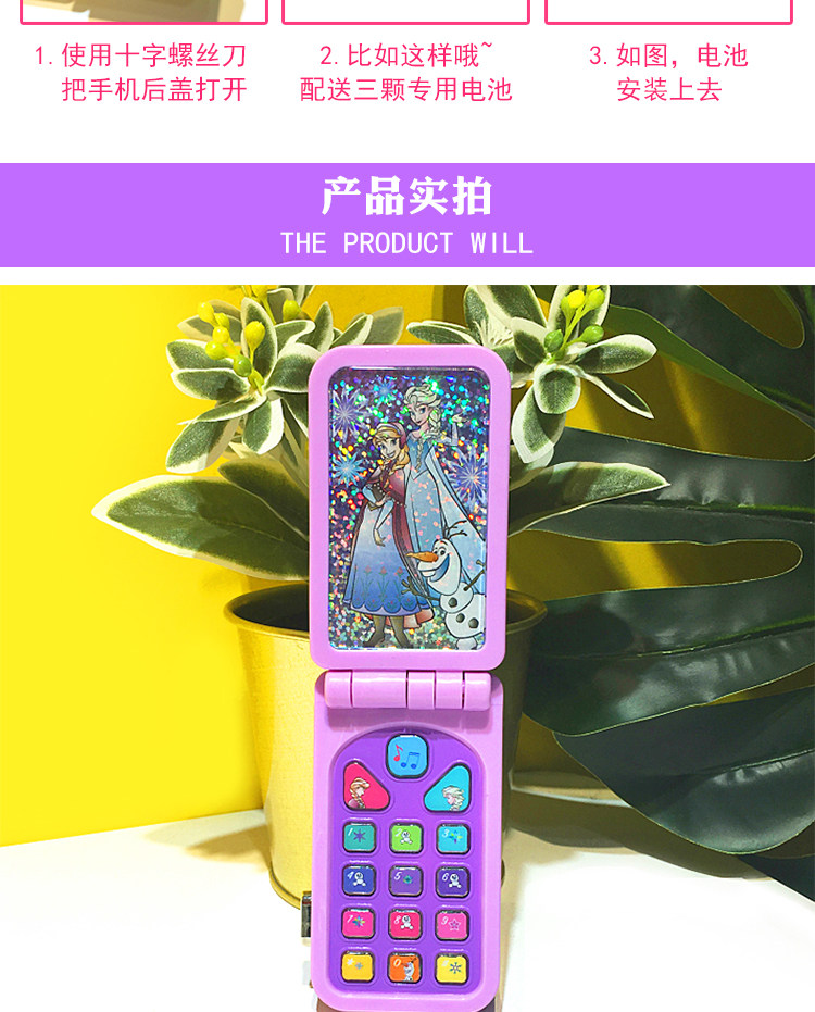 Портативный раскладной мобильный телефон, реалистичная музыкальная игрушка для девочек, «Холодное сердце», раннее развитие