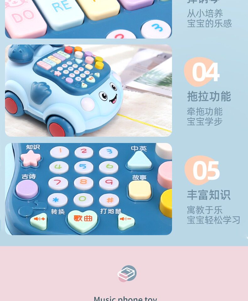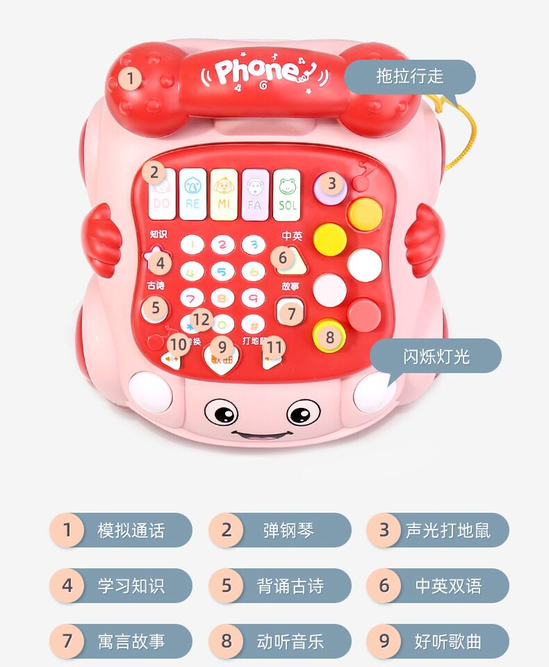 Игрушка, музыкальный телефон для мальчиков и девочек, раннее развитие, 6 мес., 1 лет