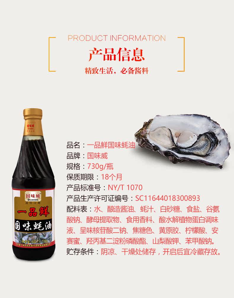 国味威 Yipin Fresh Country Sweet Oyster Sauce 730G сетки для приготовления пищи с лапшой.
