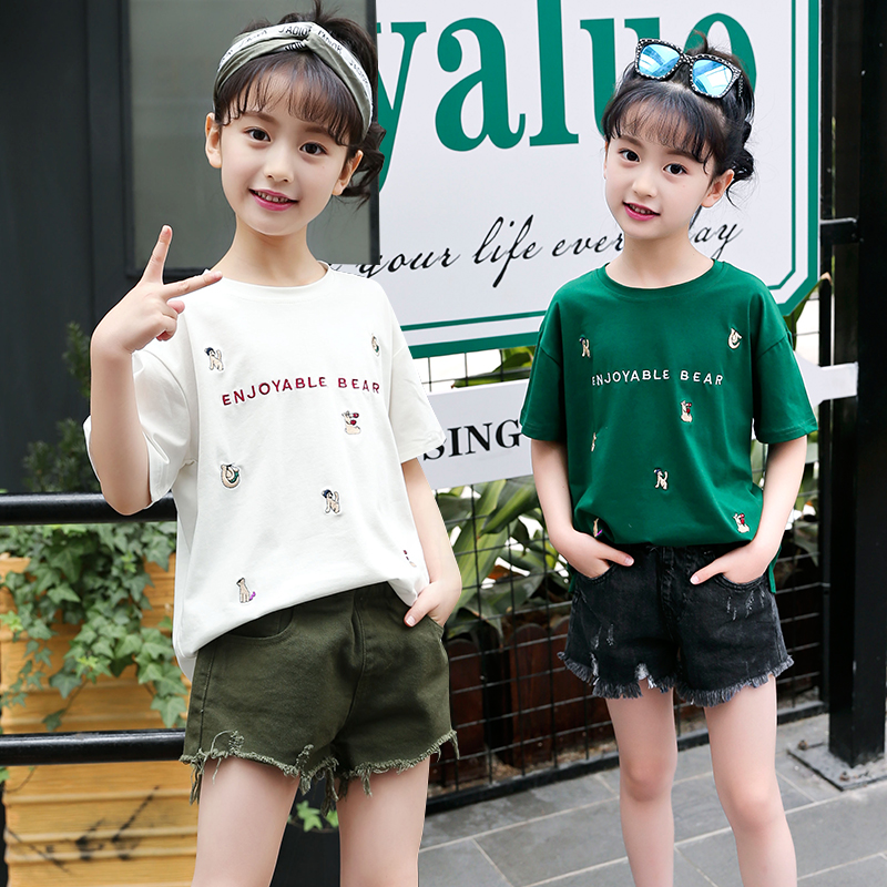 Летняя футболка, детская хлопковая летняя одежда, подходит для подростков, короткий рукав, в западном стиле