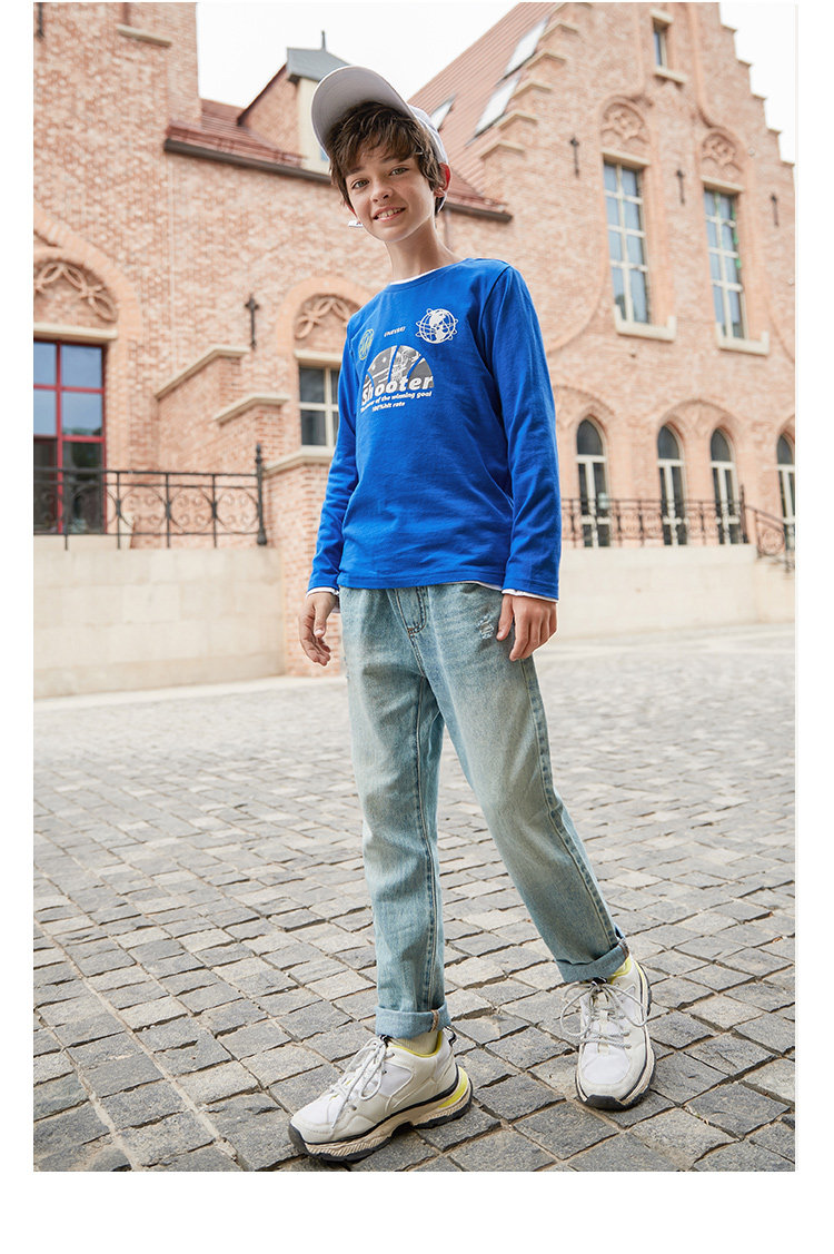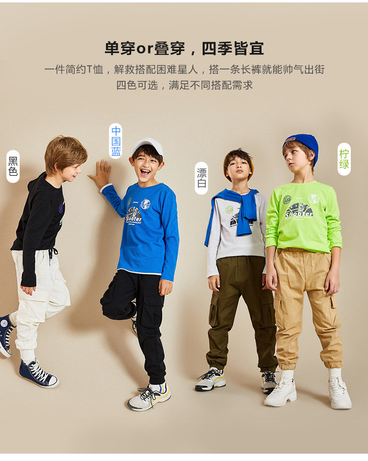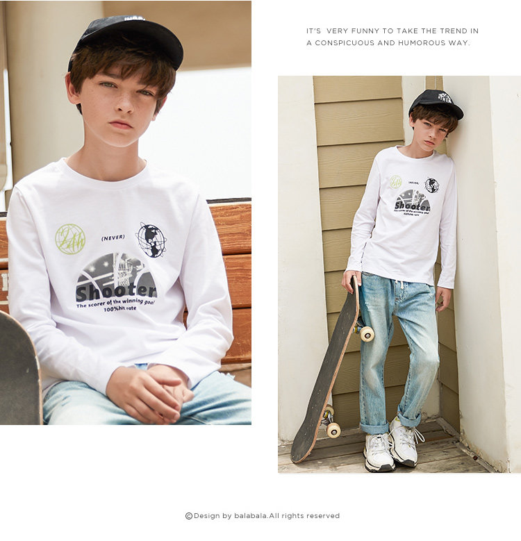 巴拉巴拉 Осенний детский хлопковый лонгслив для мальчиков, 2019, детская одежда, в корейском стиле