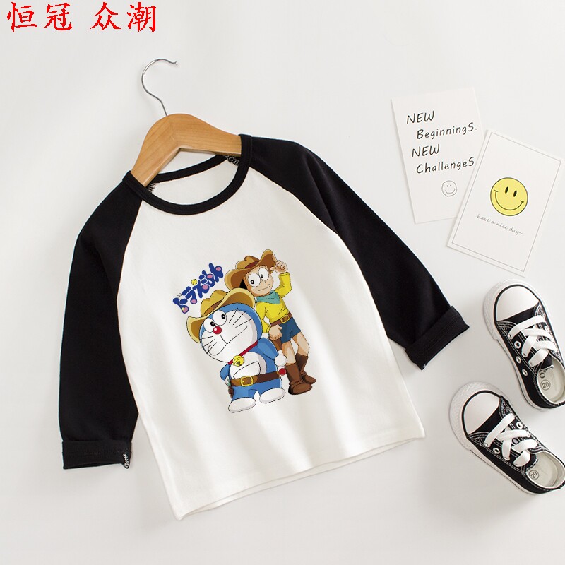 Детский осенний хлопковый приятный телу лонгслив для мальчиков, детская одежда, Дораэмон