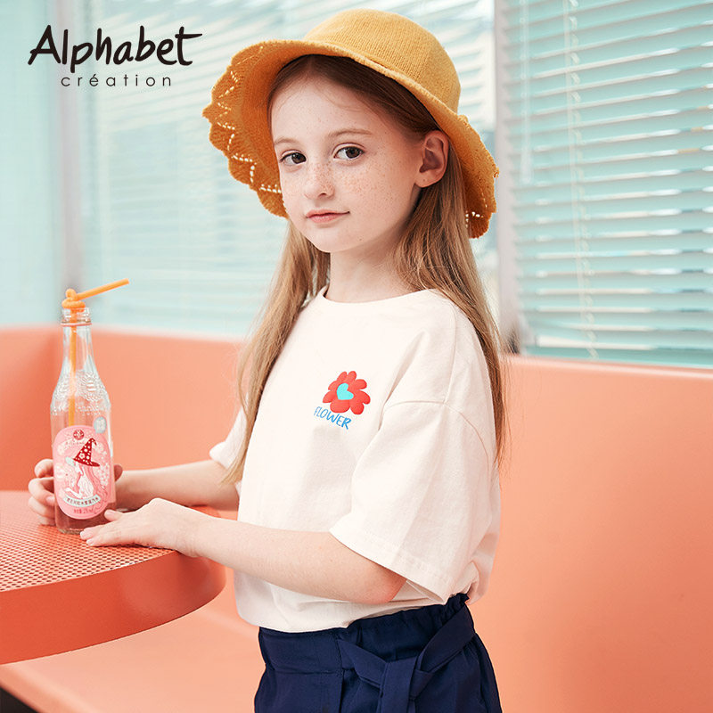 爱法贝 Летняя детская хлопковая футболка с коротким рукавом, короткий рукав, в корейском стиле, в западном стиле, подходит для подростков, детская одежда