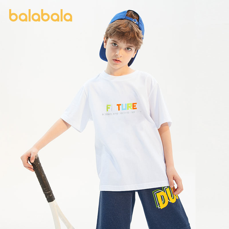 巴拉巴拉 Летняя детская хлопковая футболка с коротким рукавом, детская одежда, подходит для подростков, короткий рукав