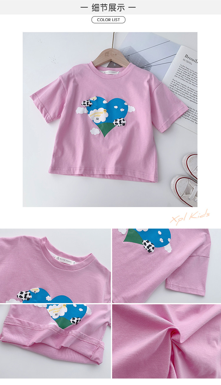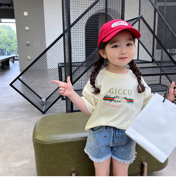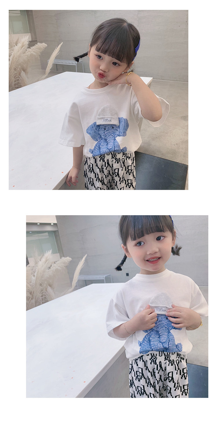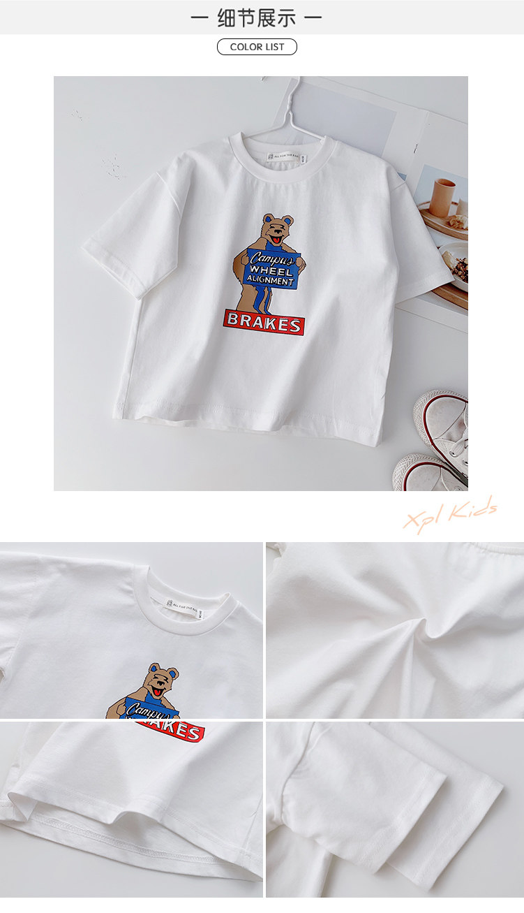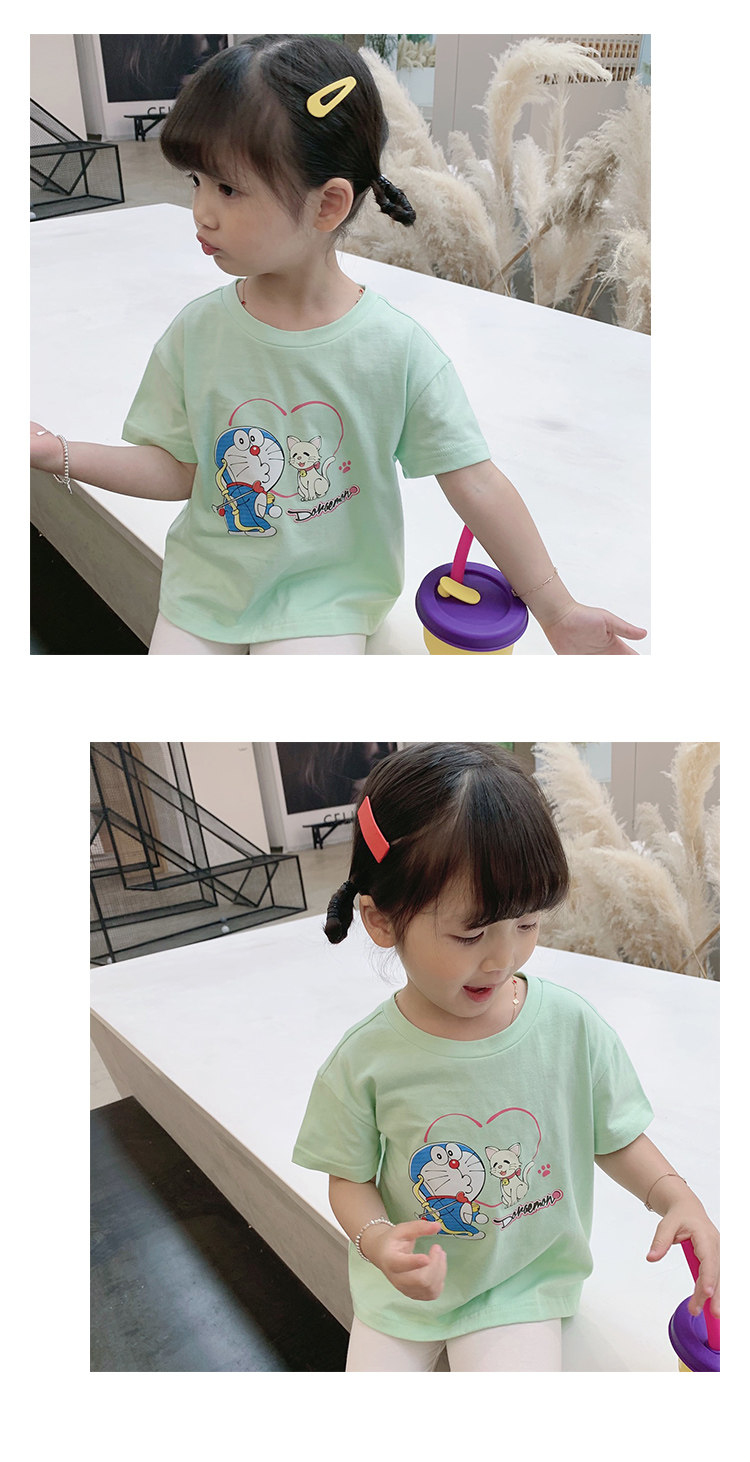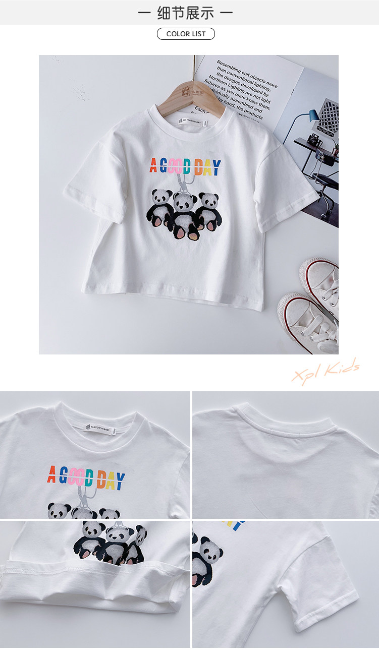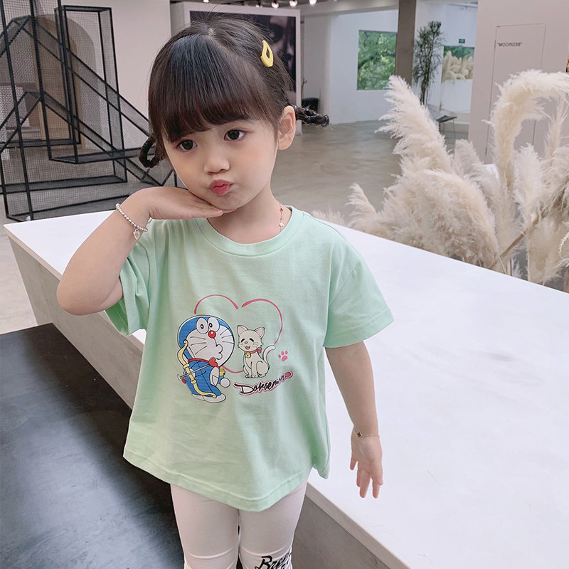 Летняя летняя одежда, мультяшная футболка с коротким рукавом, базовая приятная телу детская белая кукла, новая коллекция, детская одежда