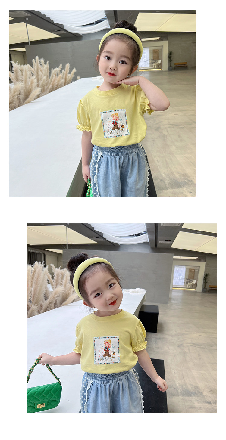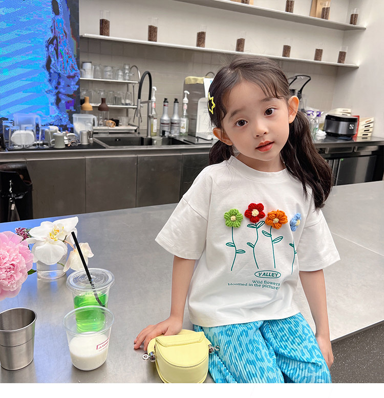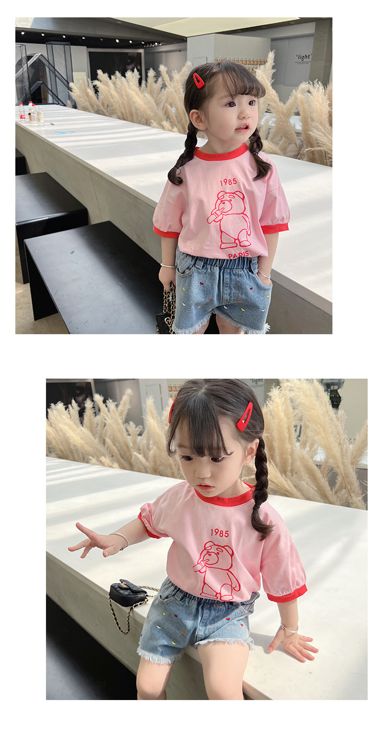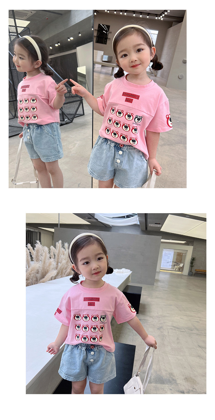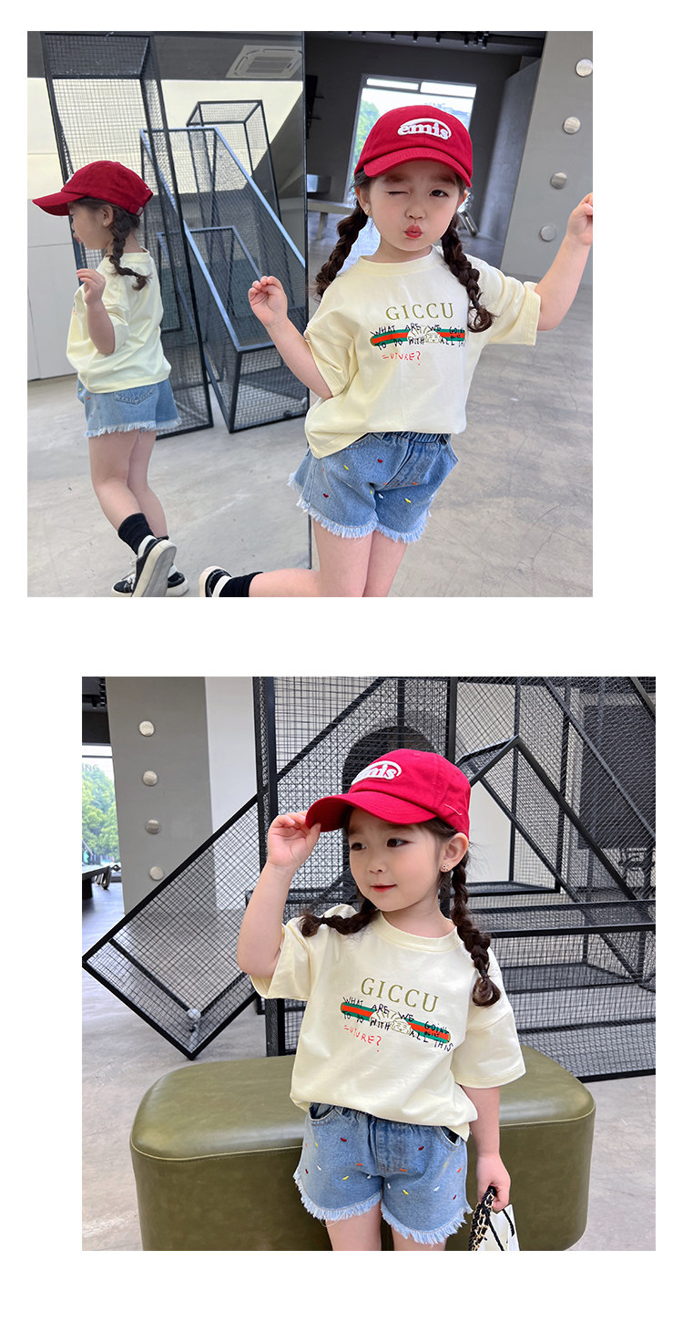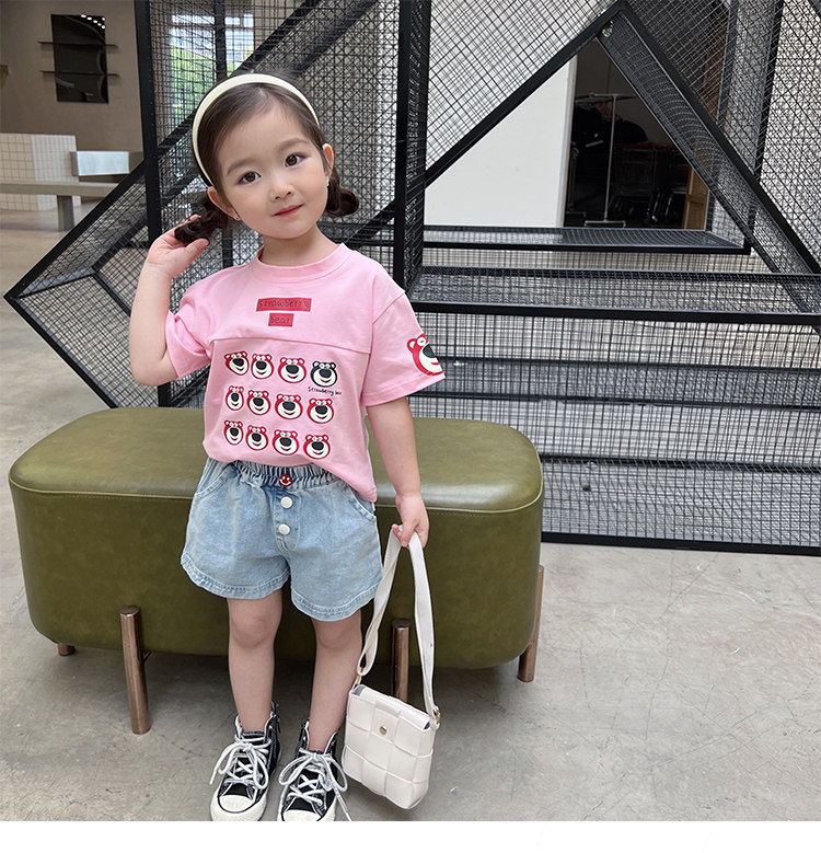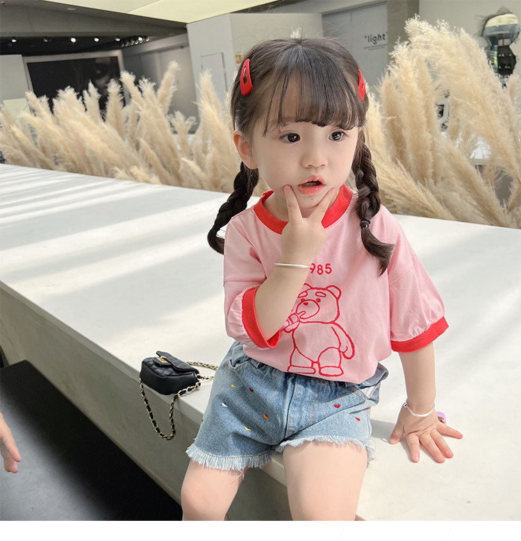 Летняя летняя одежда, мультяшная футболка с коротким рукавом, базовая приятная телу детская белая кукла, новая коллекция, детская одежда