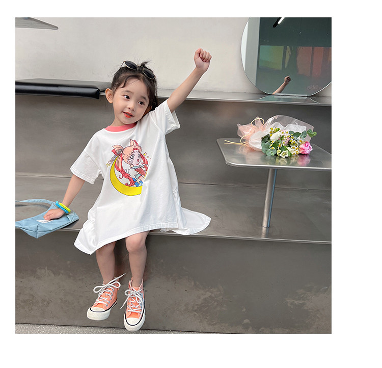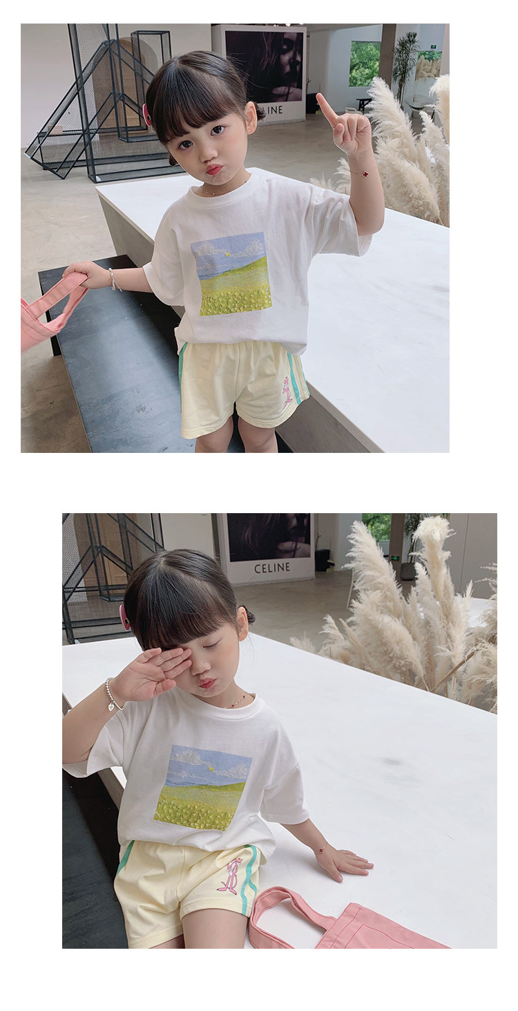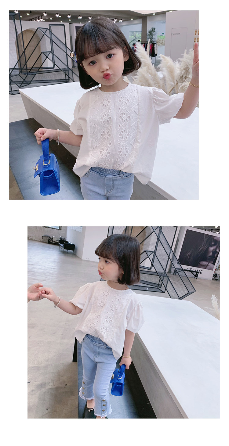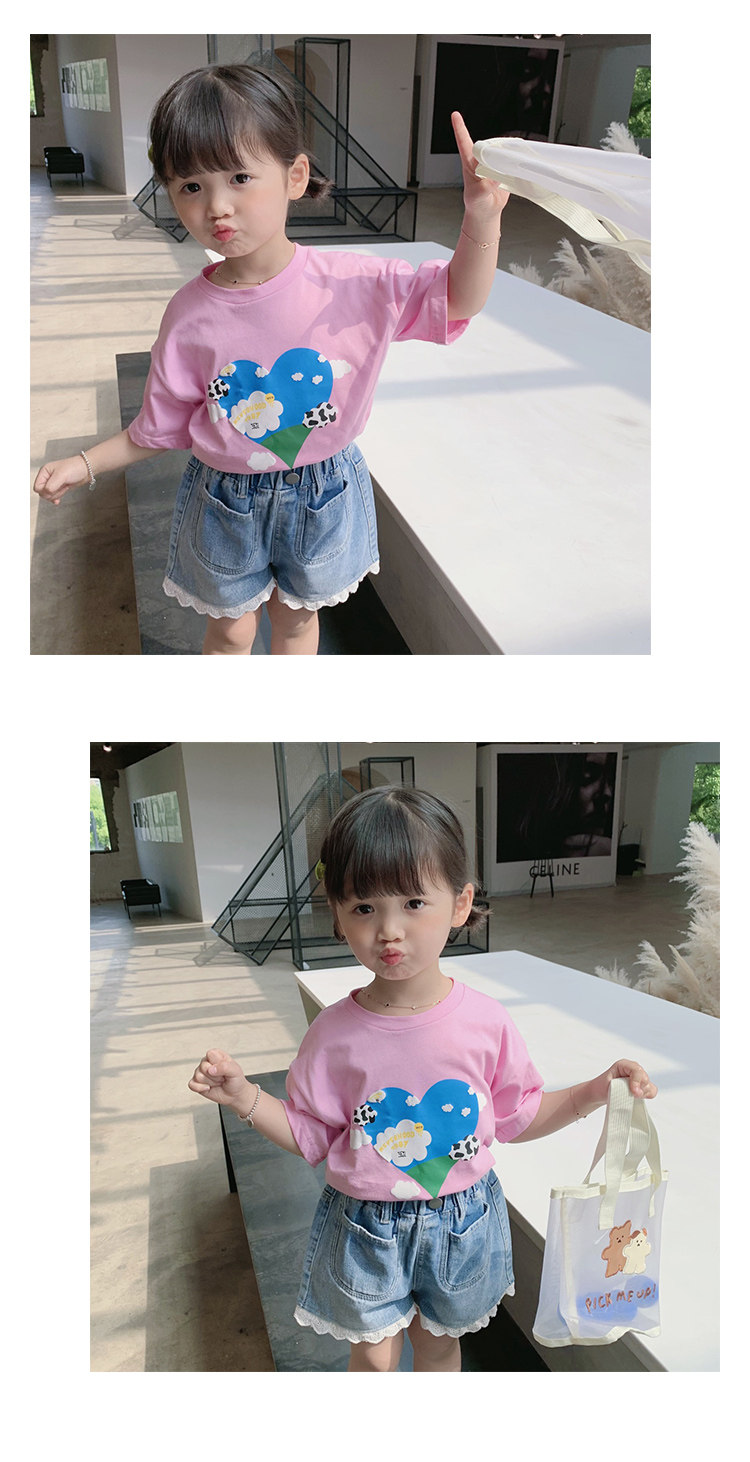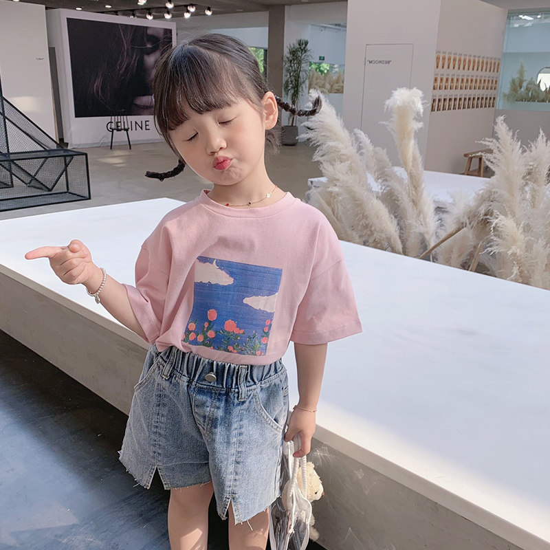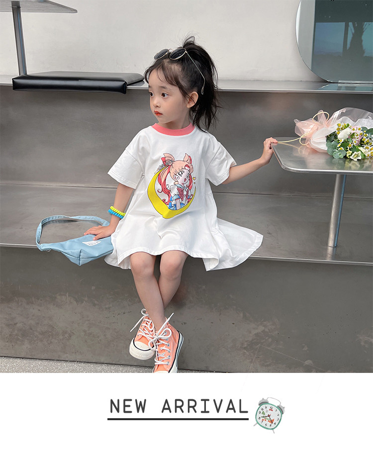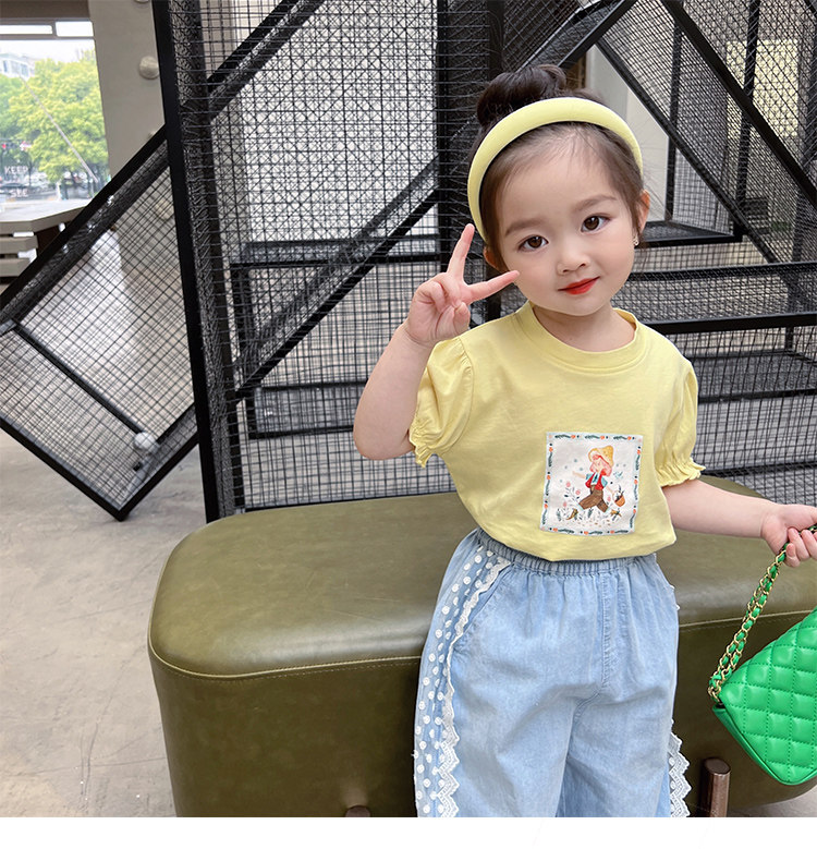 Летняя летняя одежда, мультяшная футболка с коротким рукавом, базовая приятная телу детская белая кукла, новая коллекция, детская одежда