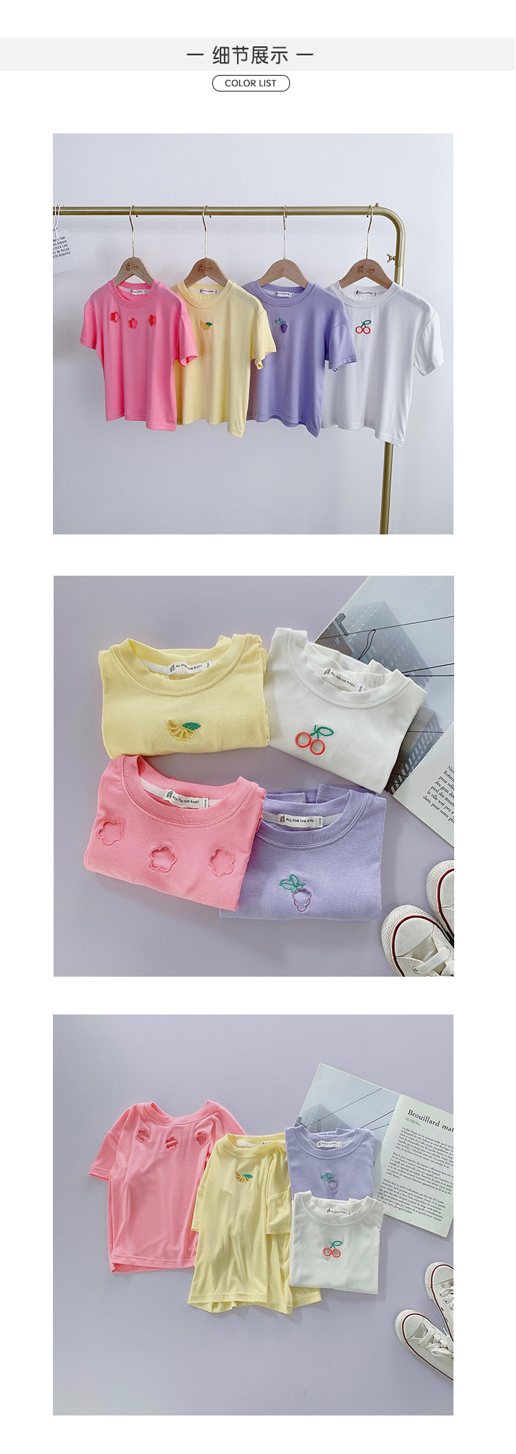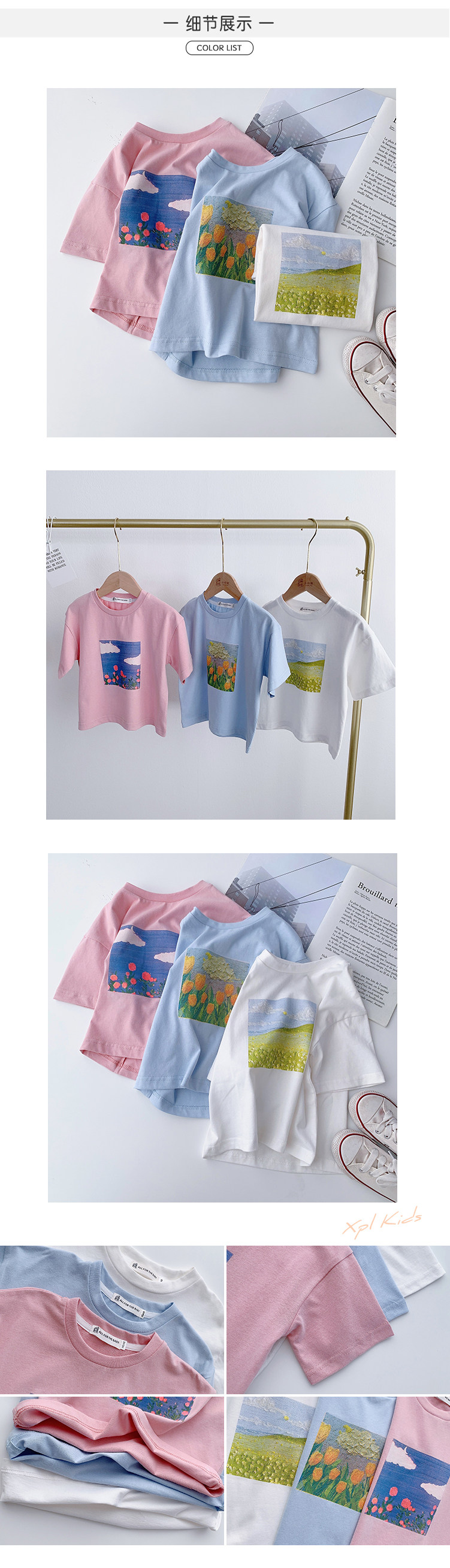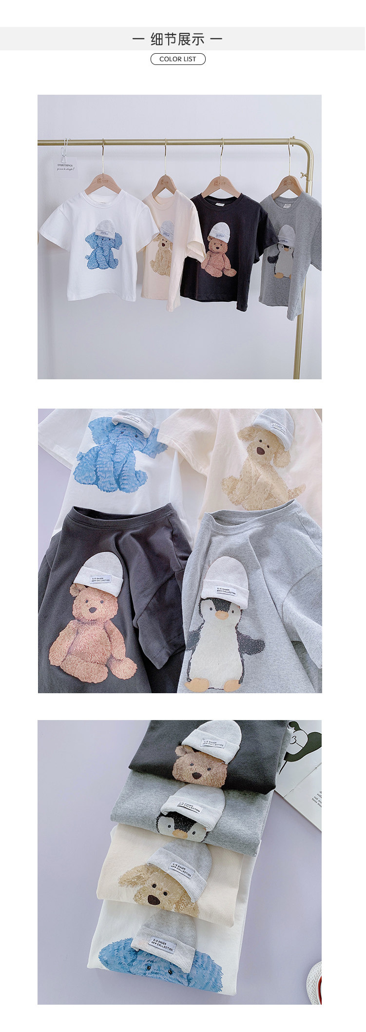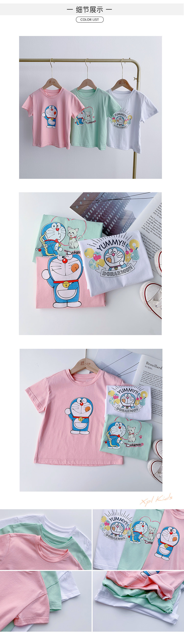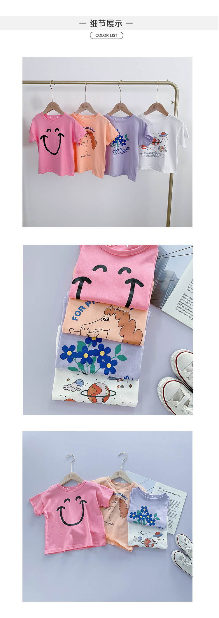 Летняя летняя одежда, мультяшная футболка с коротким рукавом, базовая приятная телу детская белая кукла, новая коллекция, детская одежда