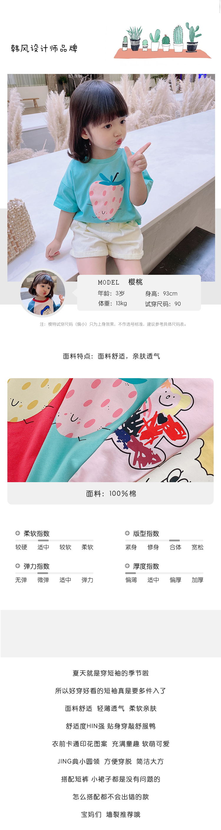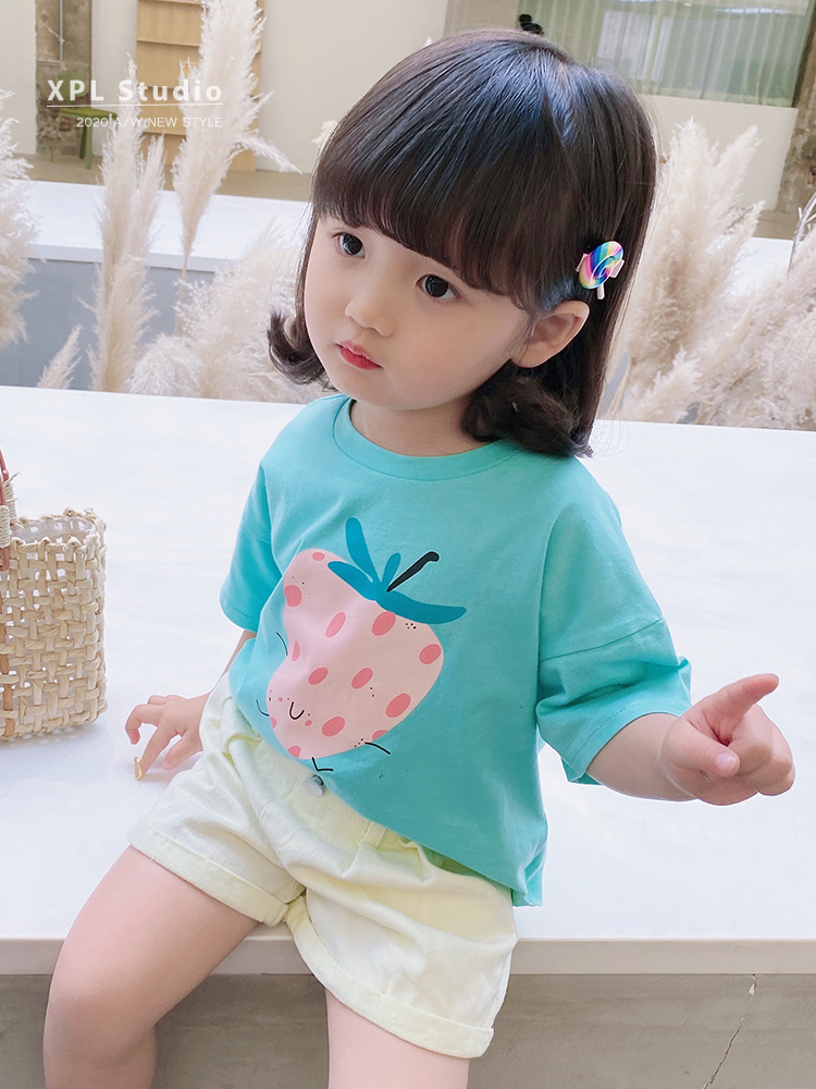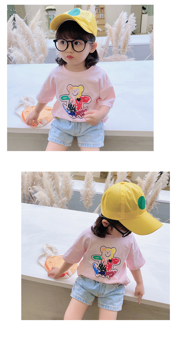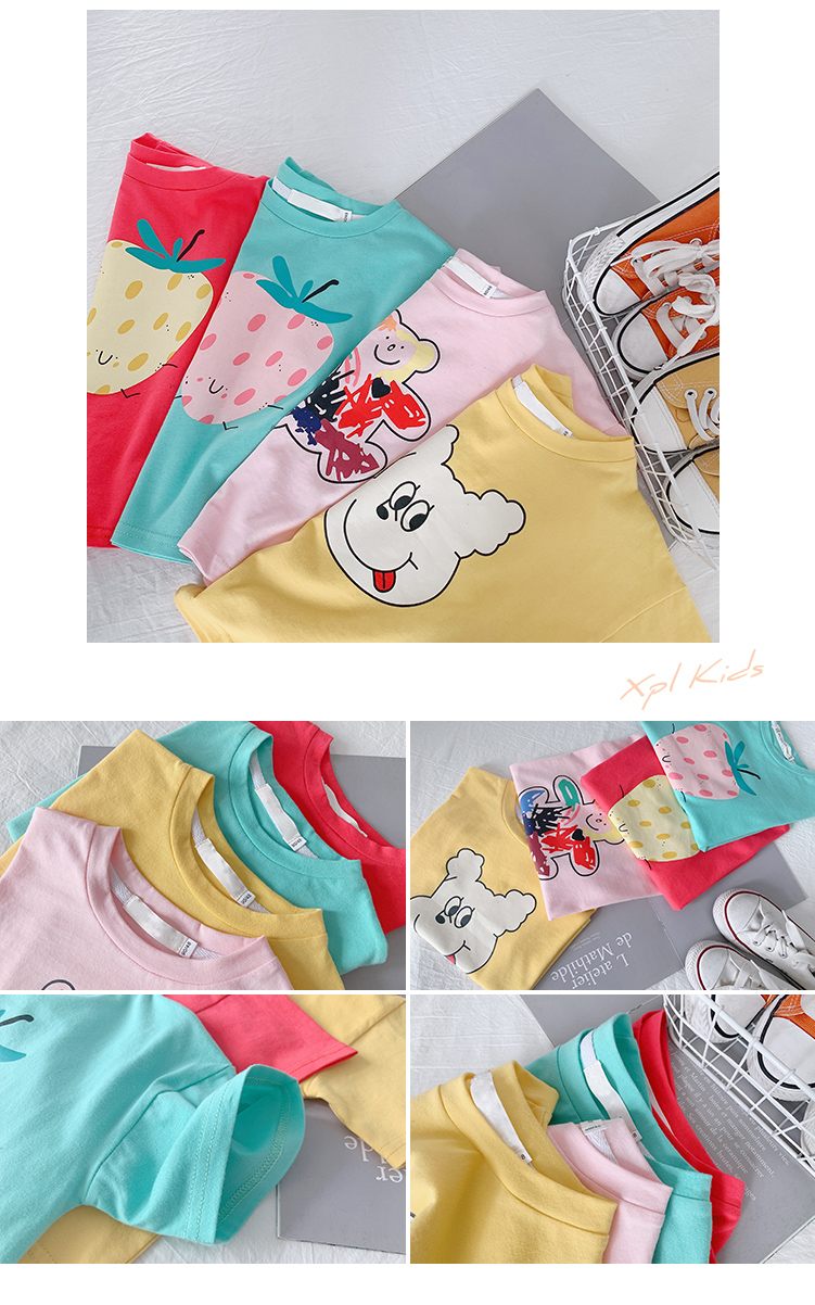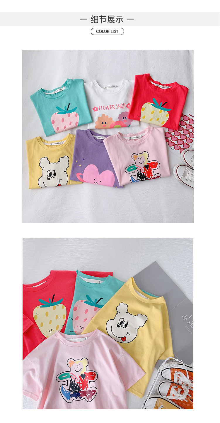 Хлопковая детская мультяшная цветная футболка, летняя одежда, короткий рукав, детская одежда, сезон 2021