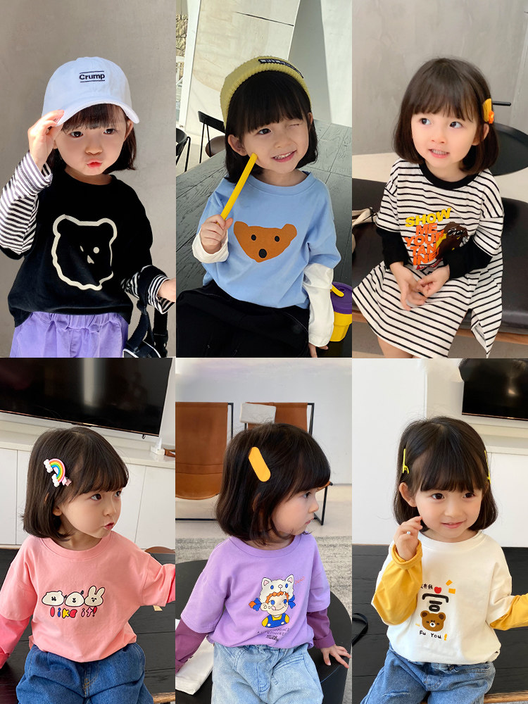Комплект, детская футболка, мультяшный детский базовый приятный телу осенний лонгслив, детская одежда, 2020