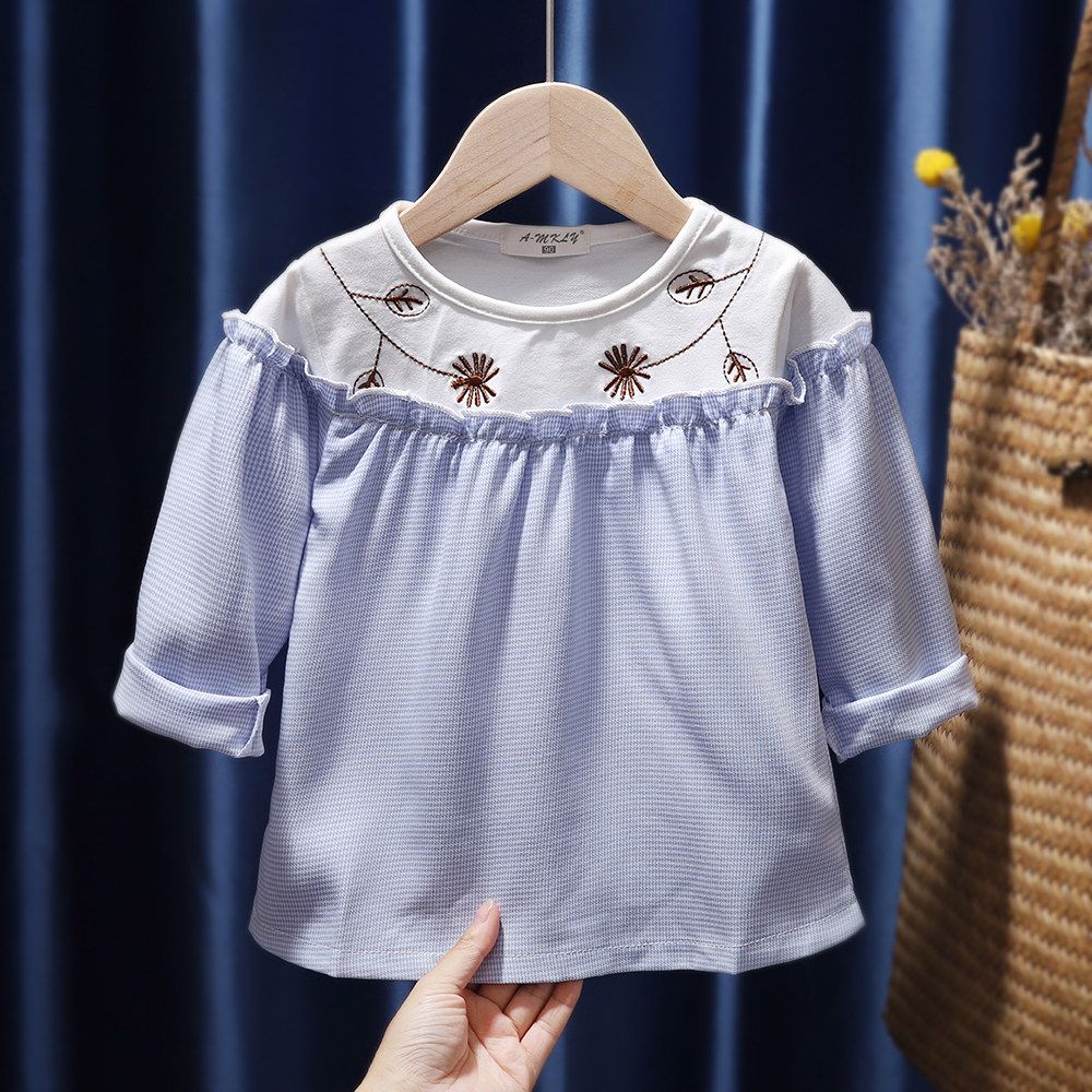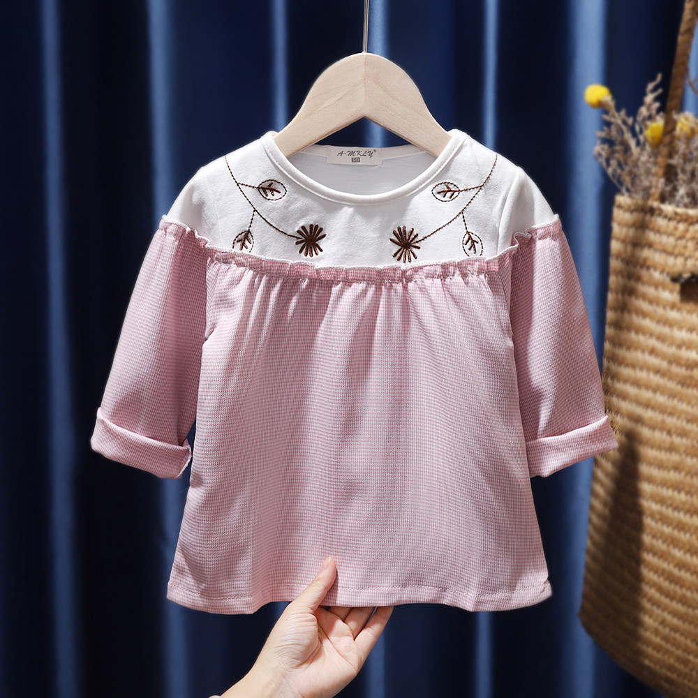 Осенний хлопковый детский лонгслив для девочек, в западном стиле, детская одежда