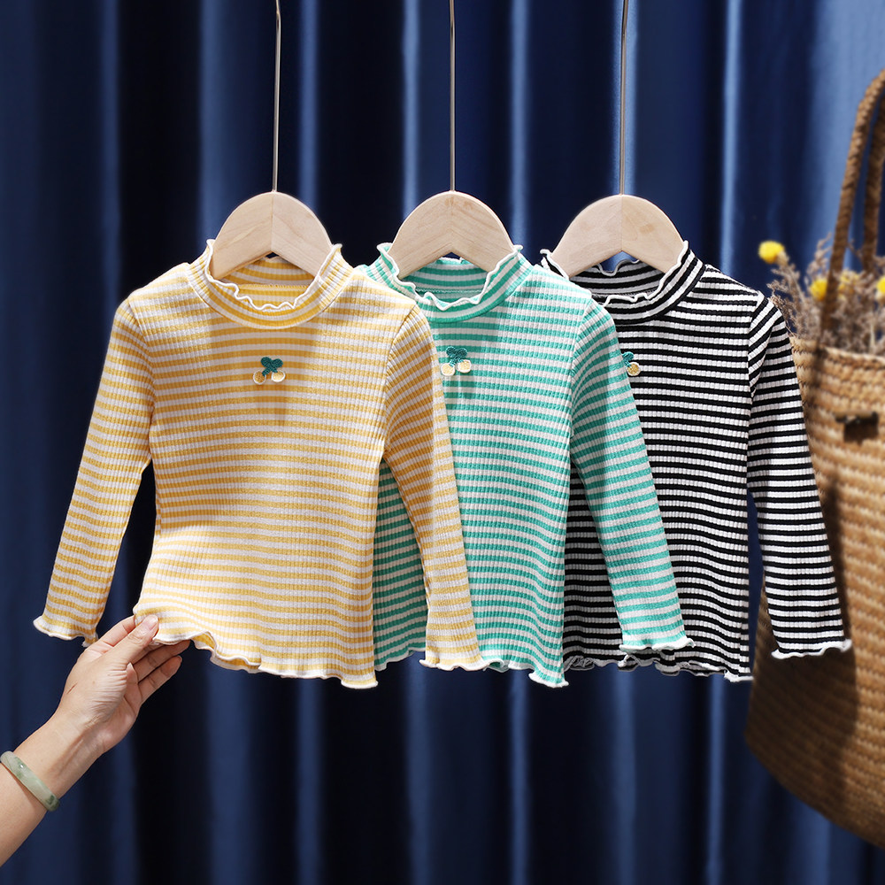Базовая приятная телу детская свежая милая осенняя футболка для девочек, в западном стиле, 1-6 лет, в корейском стиле