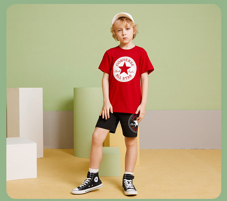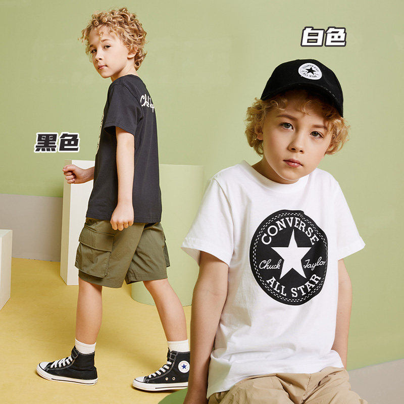 Детские конверсы, комплект для мальчиков, летняя тонкая хлопковая футболка с коротким рукавом, короткий рукав, подходит для подростков, семейный стиль
