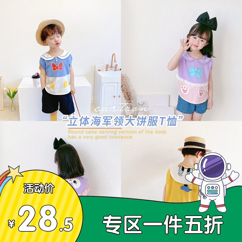Детская летняя трехмерная военно-морская тонкая милая футболка с коротким рукавом, сезон 2021, детская одежда