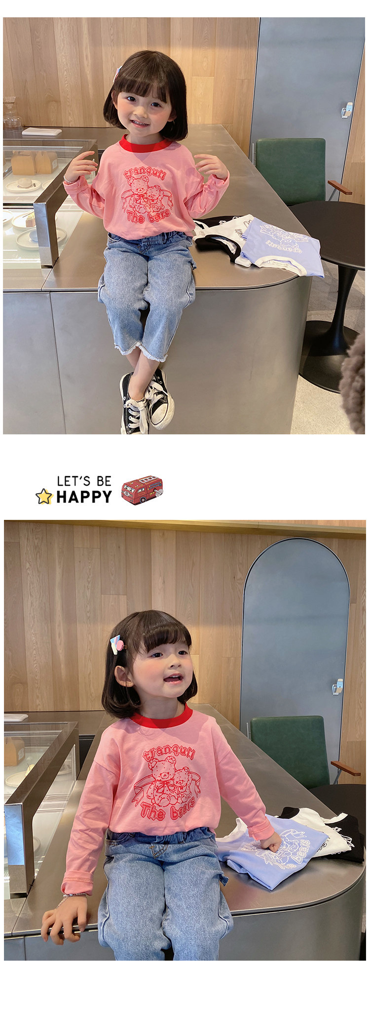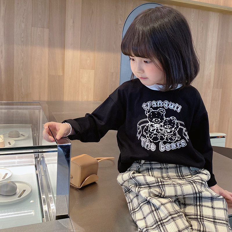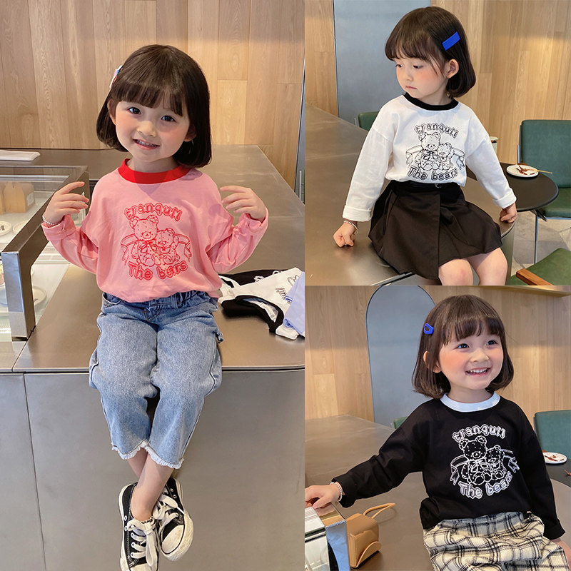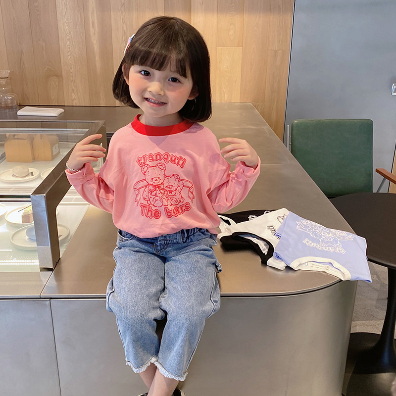 Детский мультяшный базовый приятный телу весенний осенний лонгслив, оверсайз, детская одежда