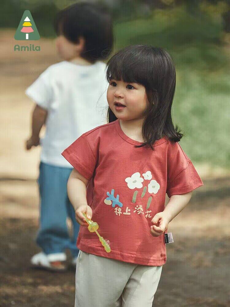 Детская футболка с коротким рукавом, хлопковая приятная телу летняя одежда, в западном стиле