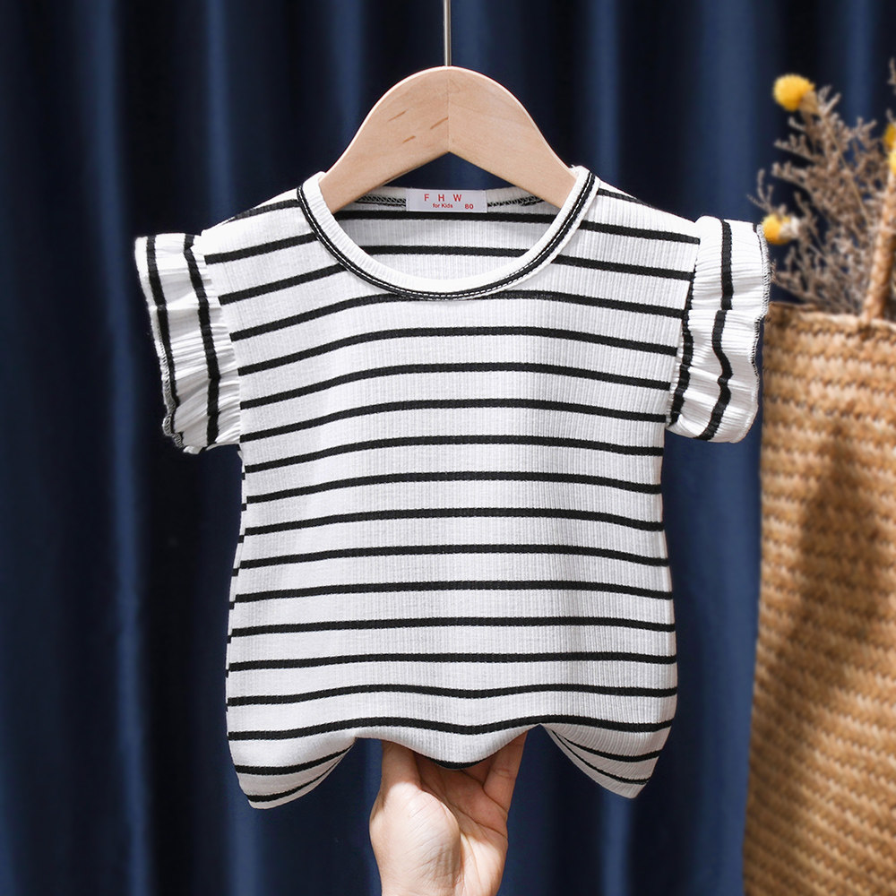 Футболка с коротким рукавом, хлопковая тонкая детская летняя одежда для девочек, 1-7 лет