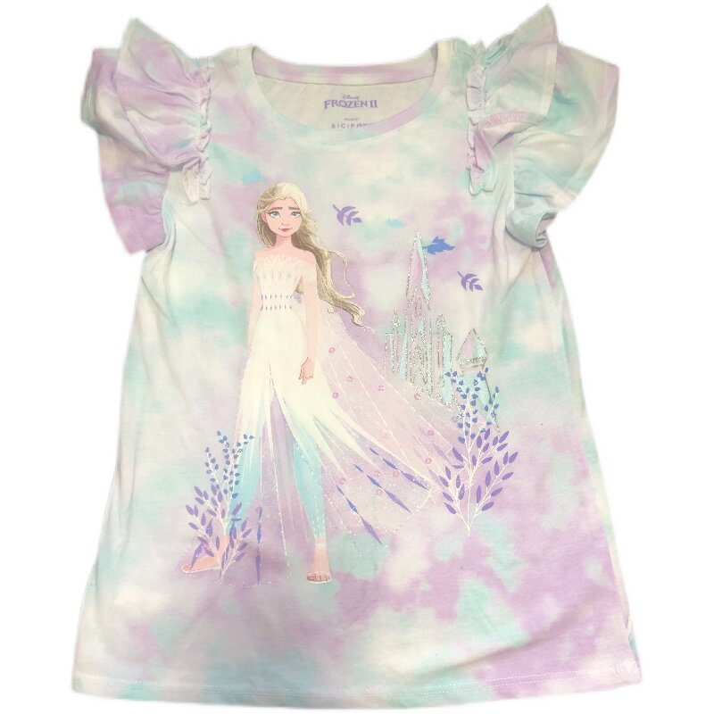 Модная мультяшная футболка для принцессы, 4-16 лет, подходит для подростков, короткий рукав, в западном стиле