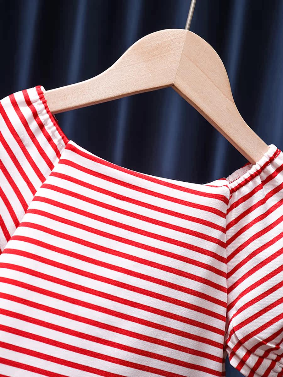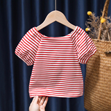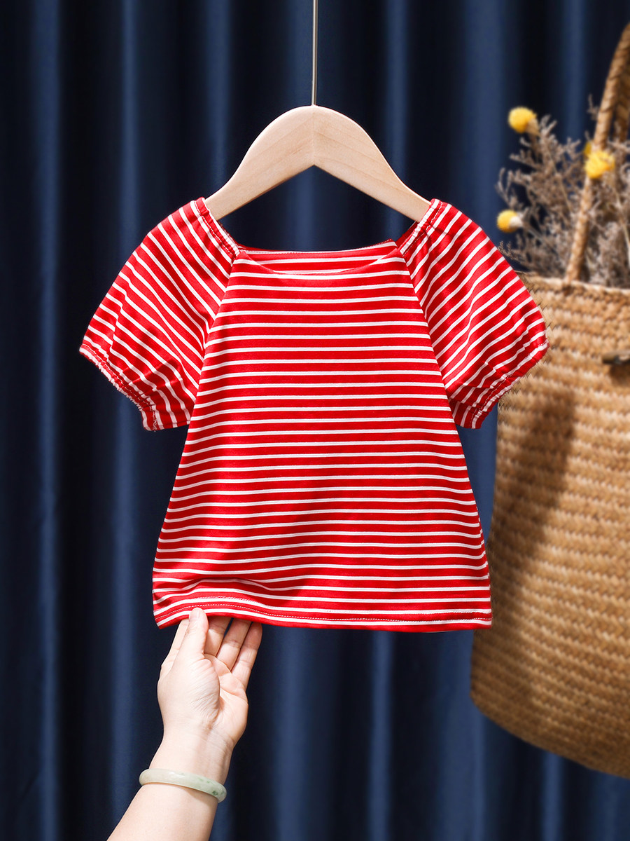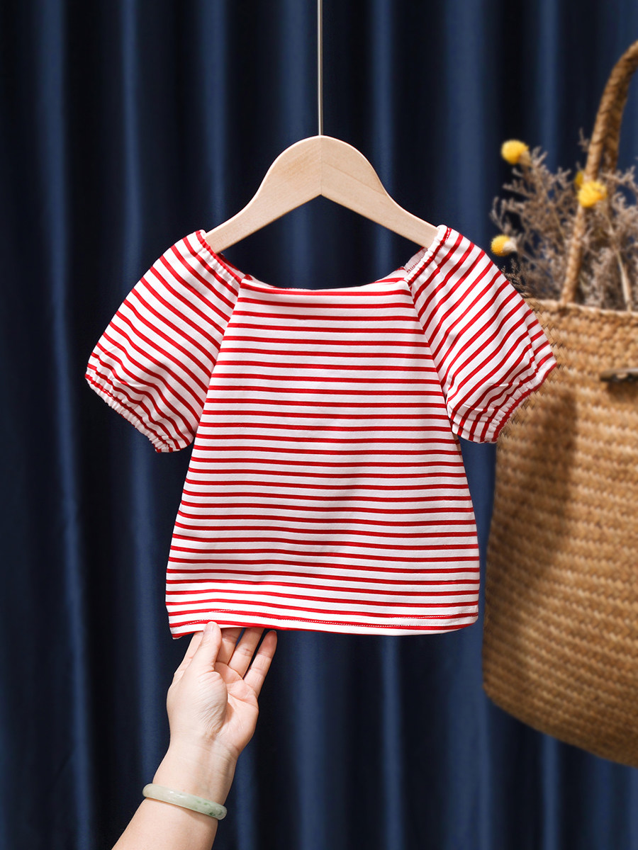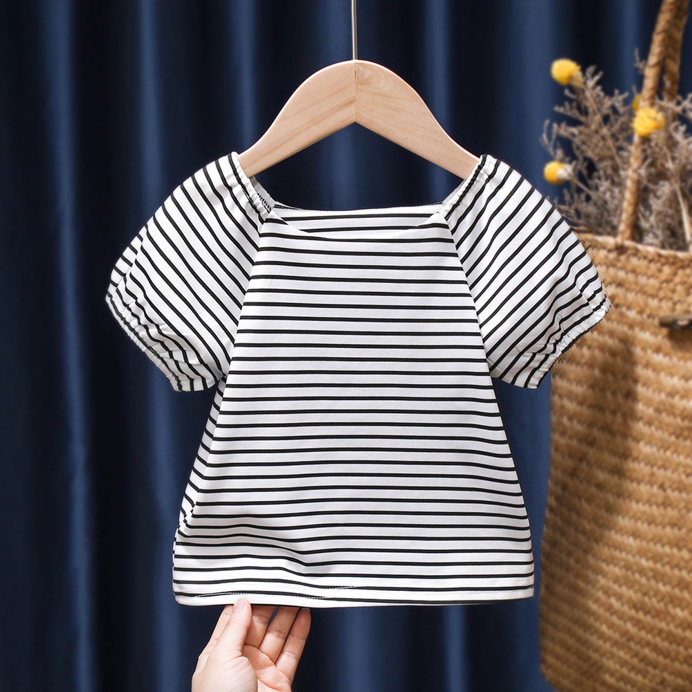 Летняя милая хлопковая футболка, рукава фонарики, 2022, детская одежда, в западном стиле