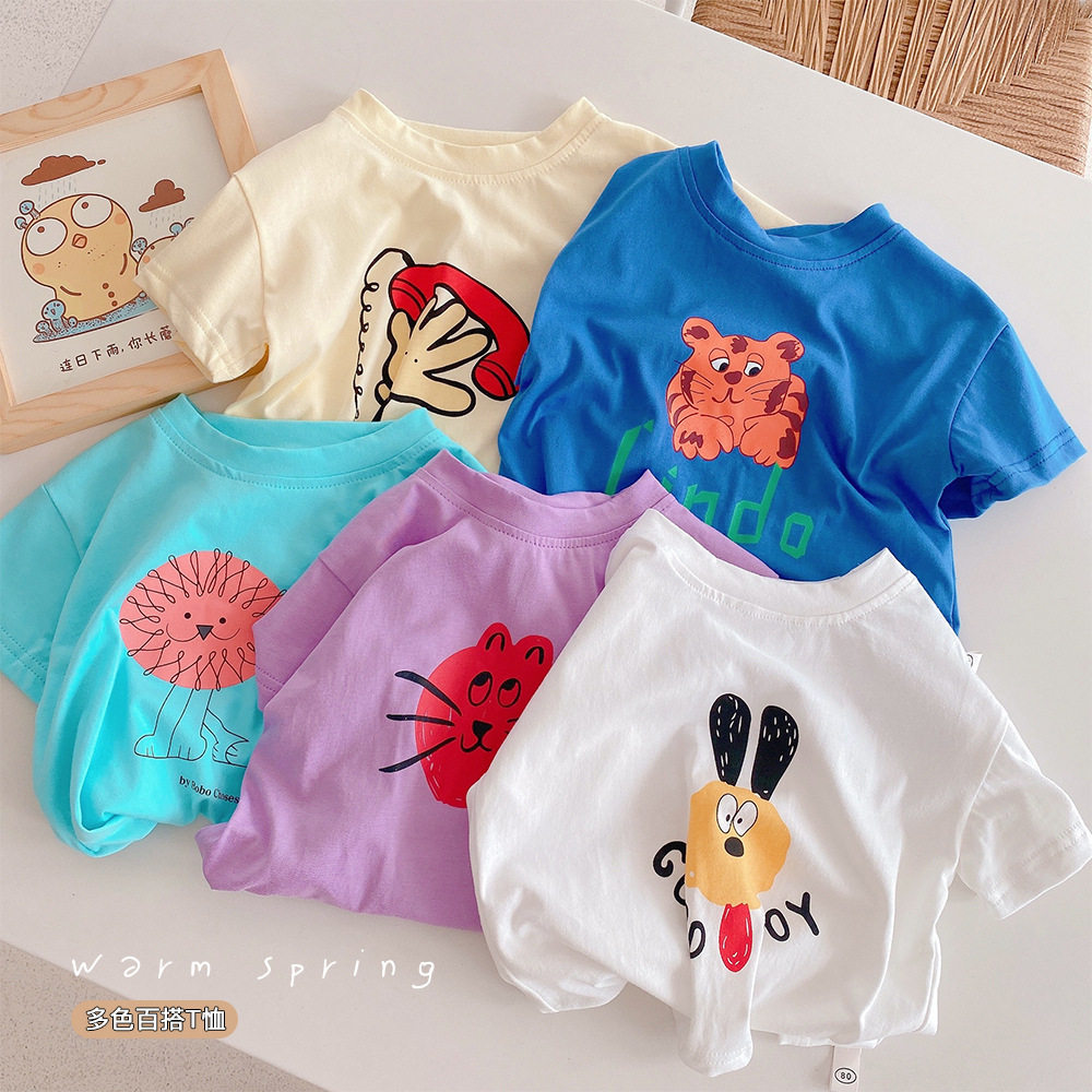 Летняя мультяшная хлопковая брендовая детская базовая приятная телу футболка подходит для мужчин и женщин, в корейском стиле, короткий рукав