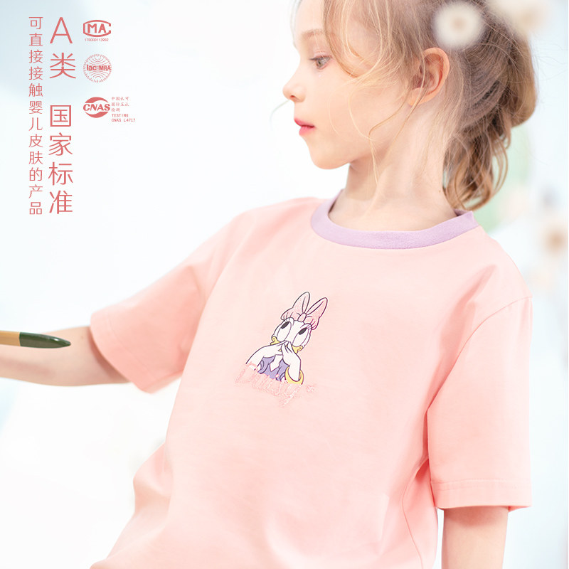 Дисней, детская базовая приятная телу футболка с коротким рукавом, в западном стиле, подходит для подростков, детская одежда