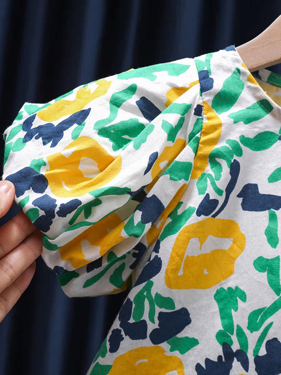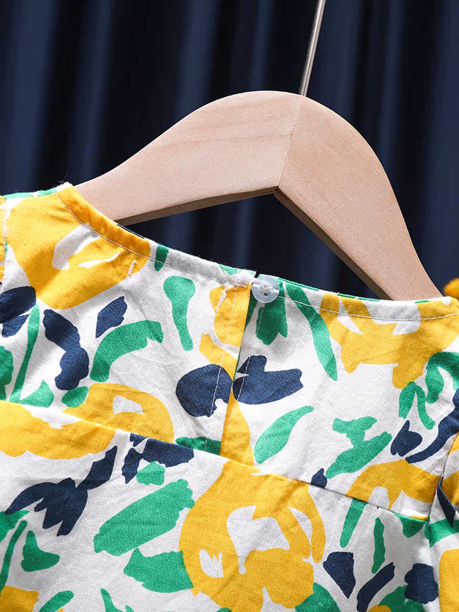 Летнее хлопковое платье, юбка, летняя одежда, милый наряд маленькой принцессы, в корейском стиле, в западном стиле, цветочный принт