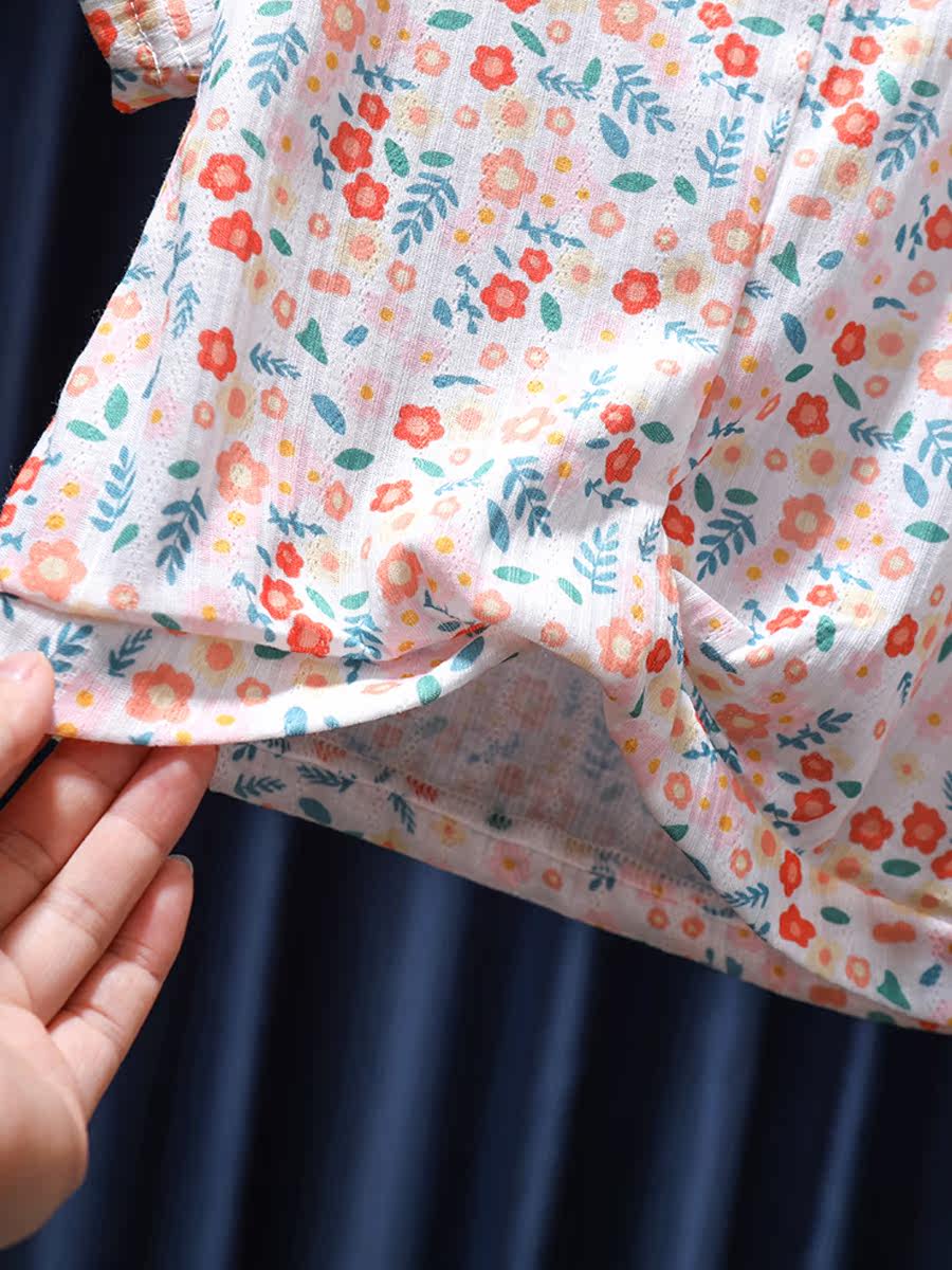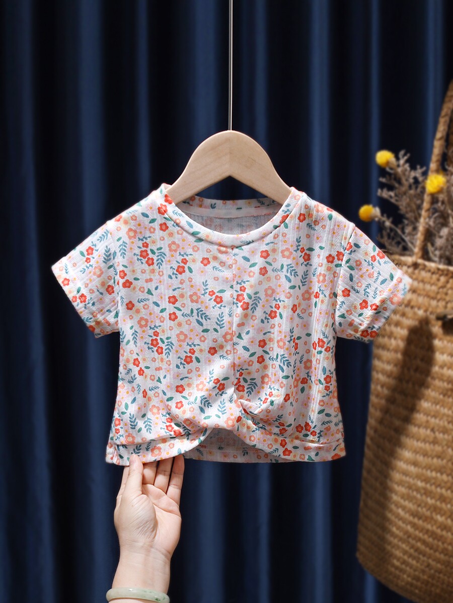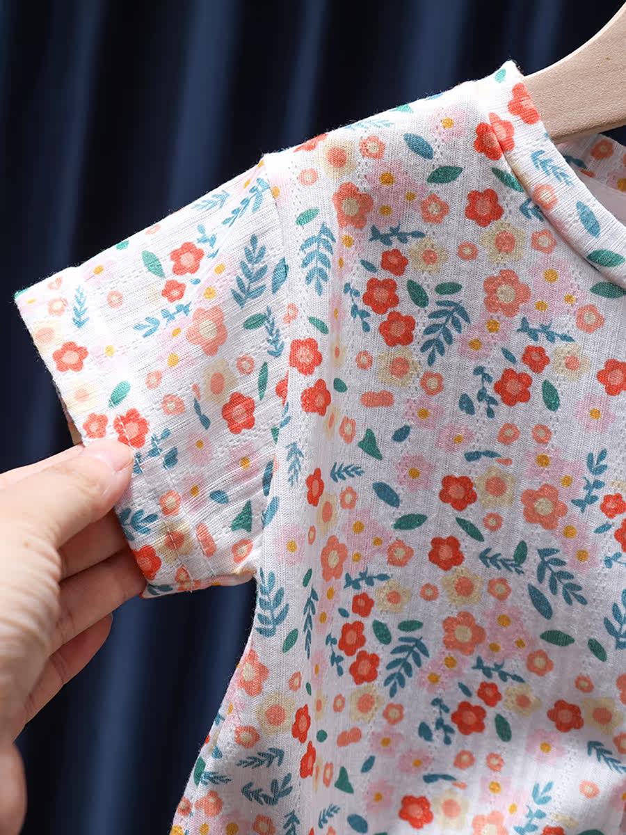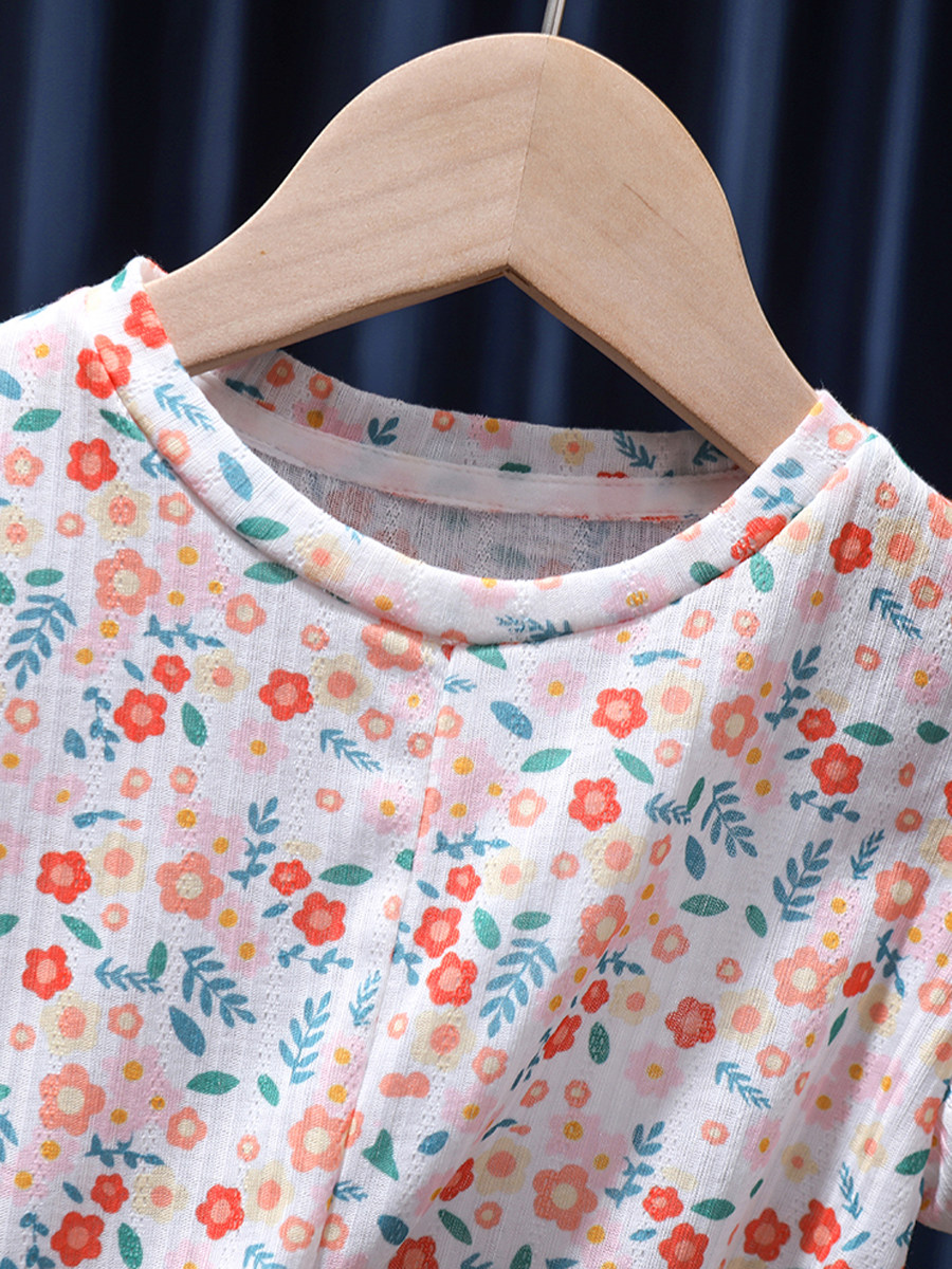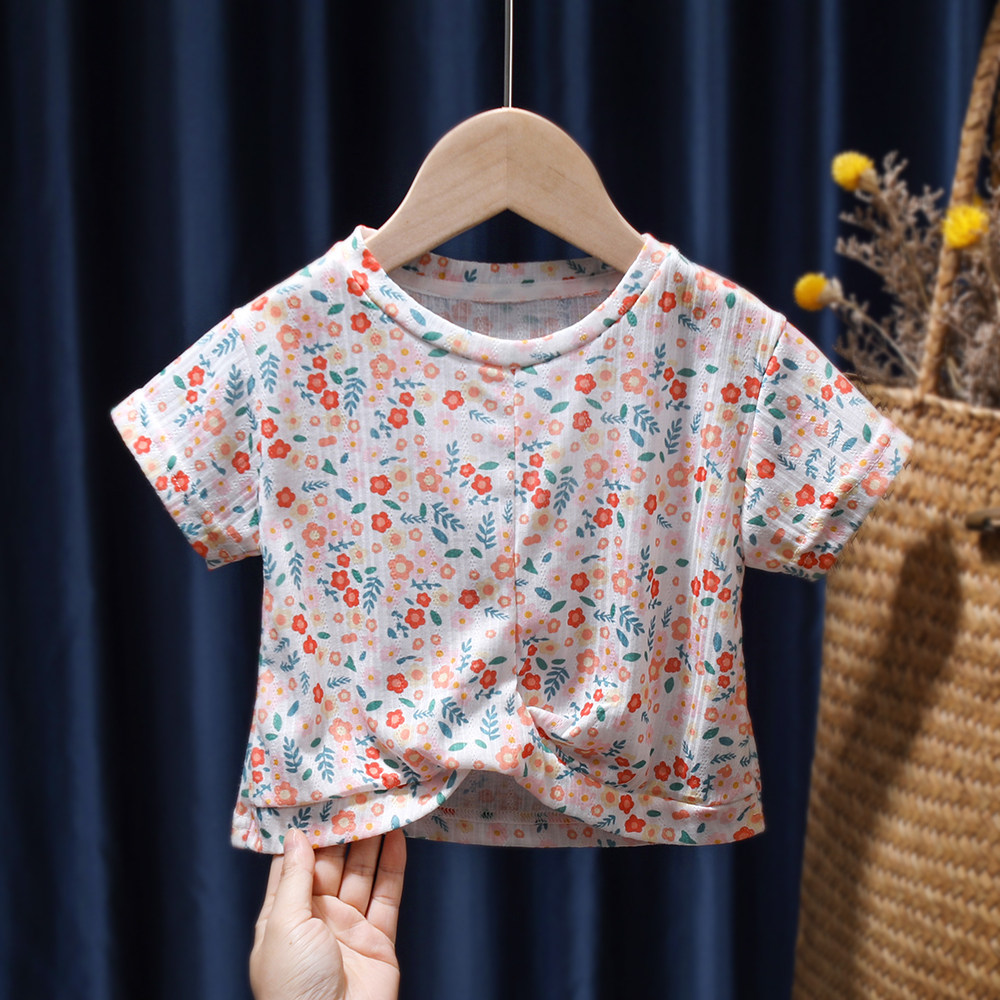 Летняя тонкая футболка с коротким рукавом для девочек, детская летняя одежда, детская одежда, цветочный принт, в корейском стиле, в западном стиле