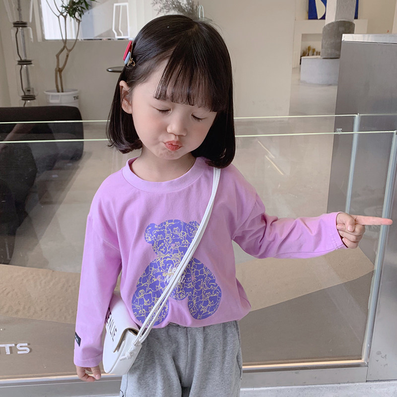 Хлопковый детский мультяшный базовый приятный телу лонгслив, нарукавники, детская осенняя футболка, детская одежда