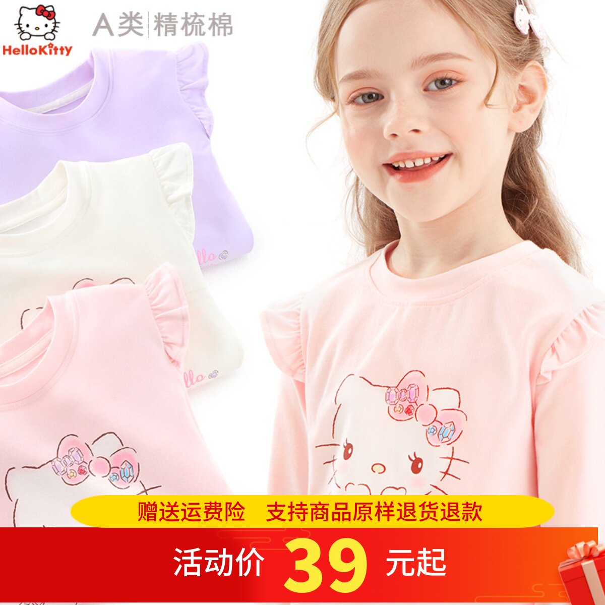 Hello kitty, базовый приятный телу детский осенний хлопковый лонгслив, подходит для подростков