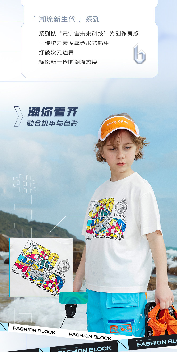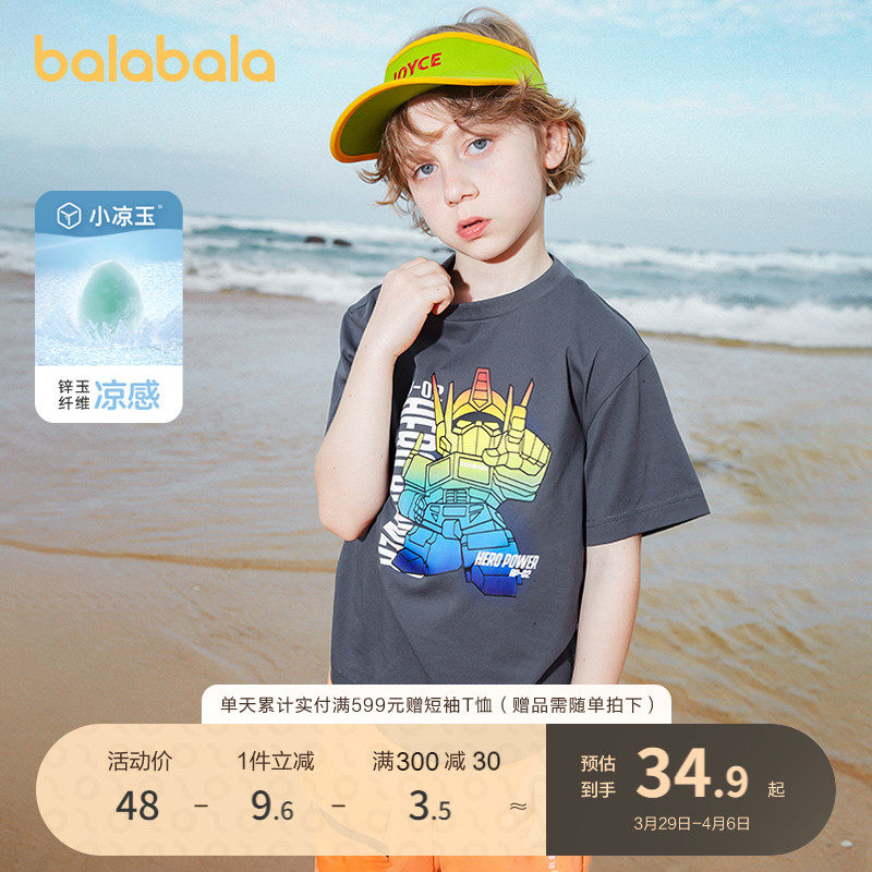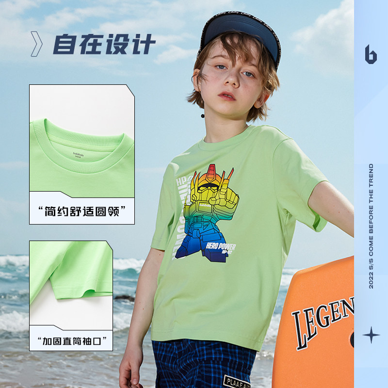 巴拉巴拉 Летняя футболка с коротким рукавом, базовая приятная телу модная летняя одежда для отдыха для мальчиков, детская одежда, подходит для подростков