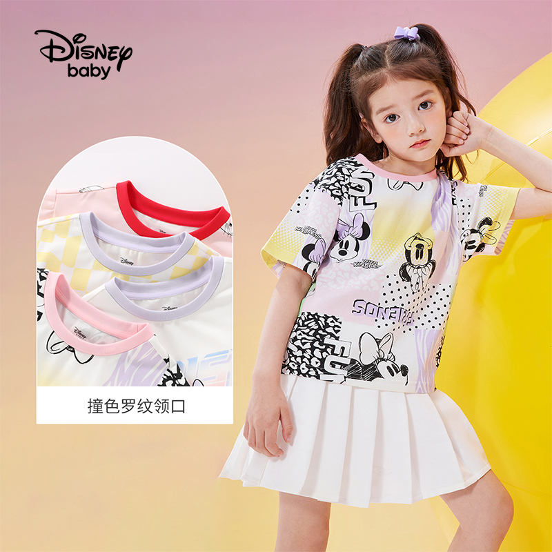 Дисней, летняя одежда, детская базовая приятная телу хлопковая футболка с коротким рукавом, детская одежда, коллекция 2022