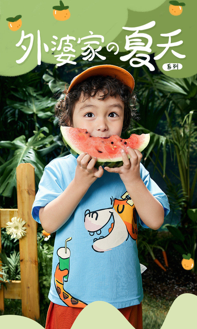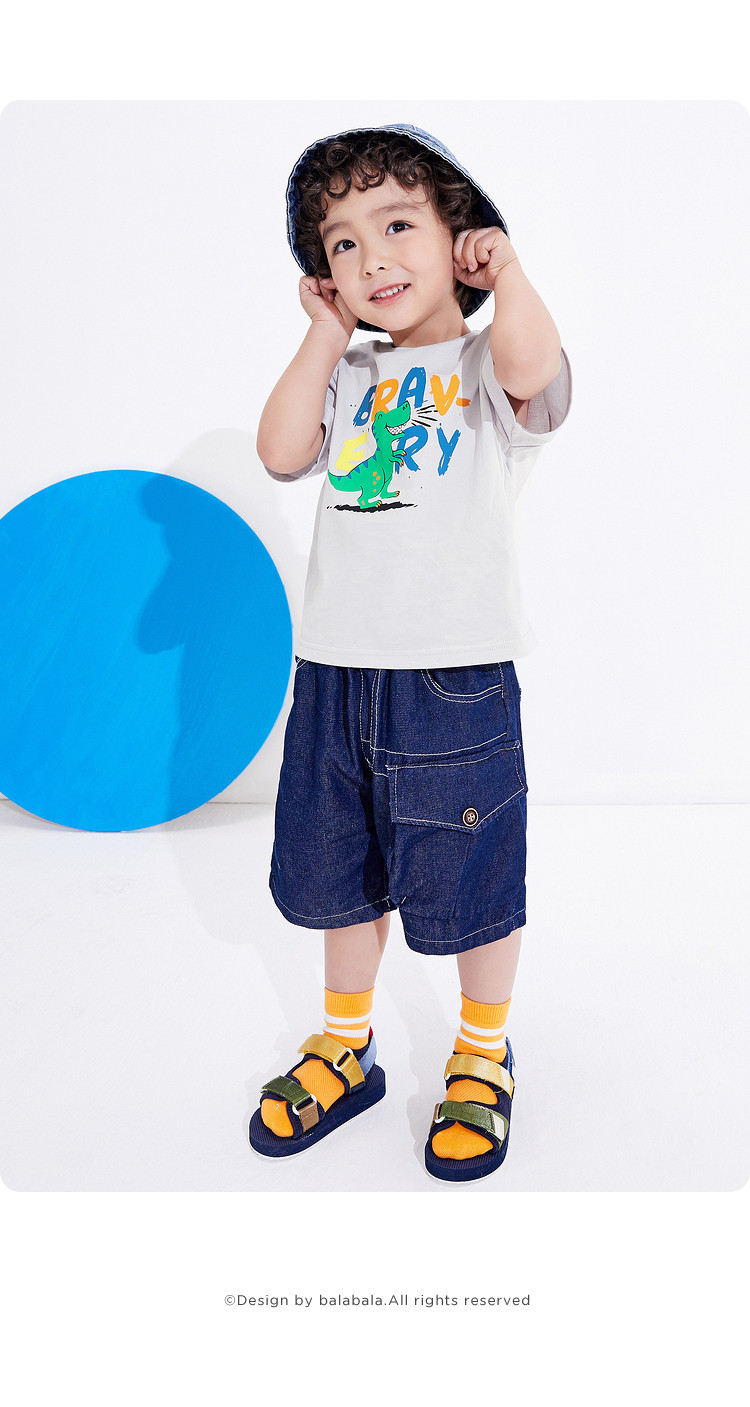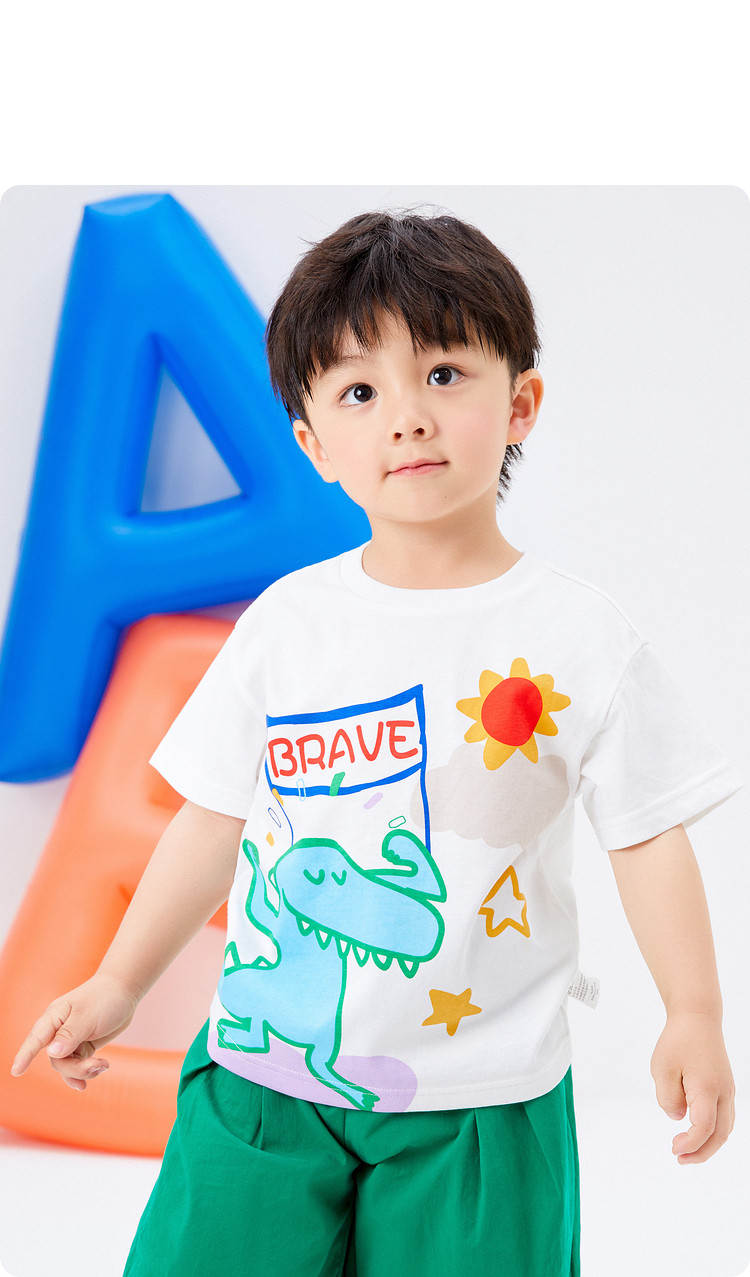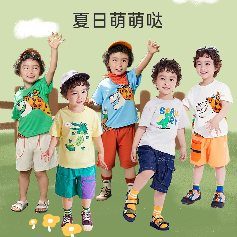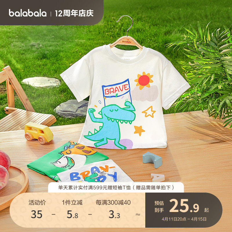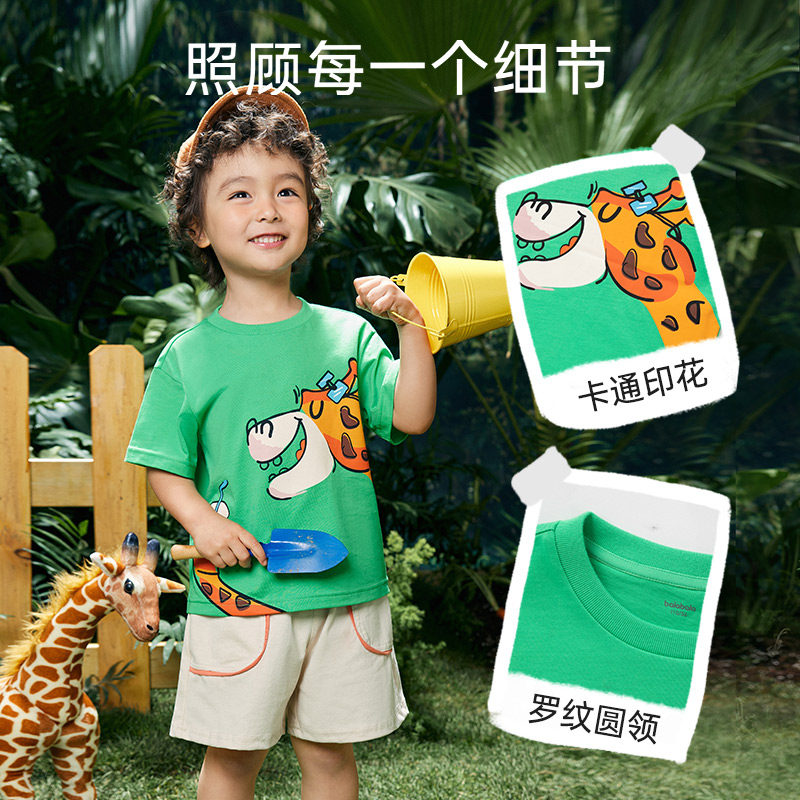 巴拉巴拉 Детская футболка с коротким рукавом для мальчиков, хлопковая базовая приятная телу летняя одежда, короткий рукав, детская одежда